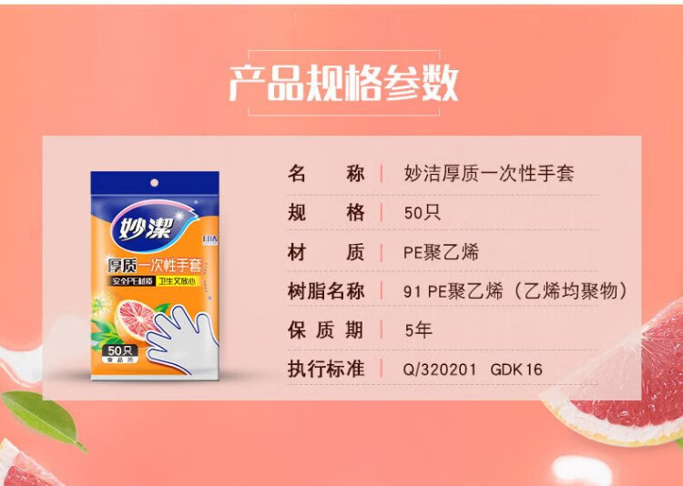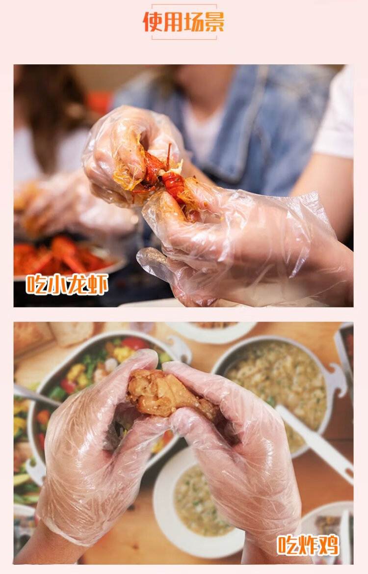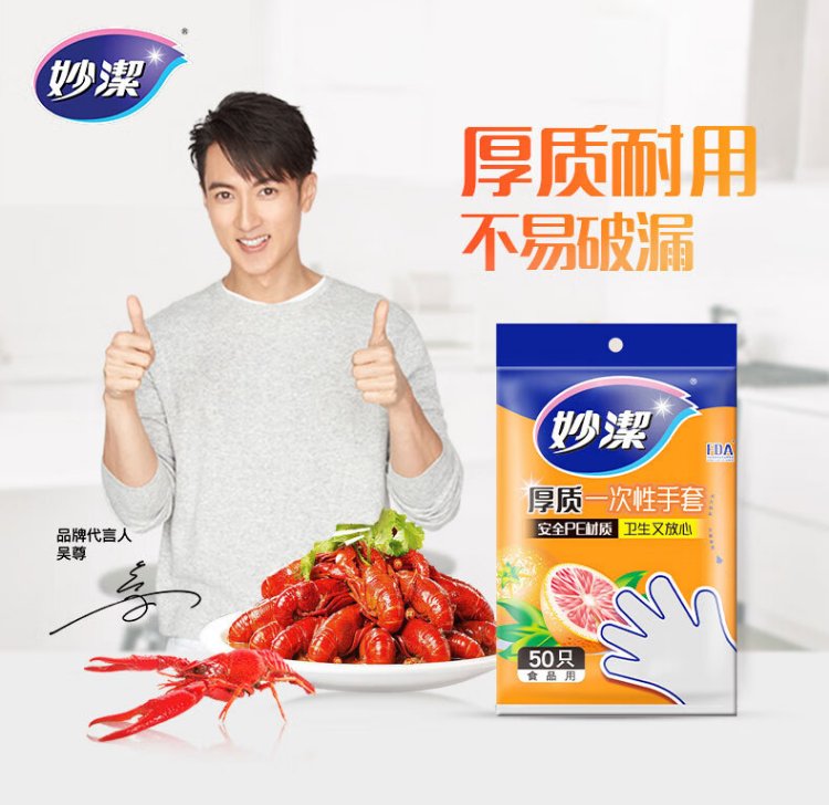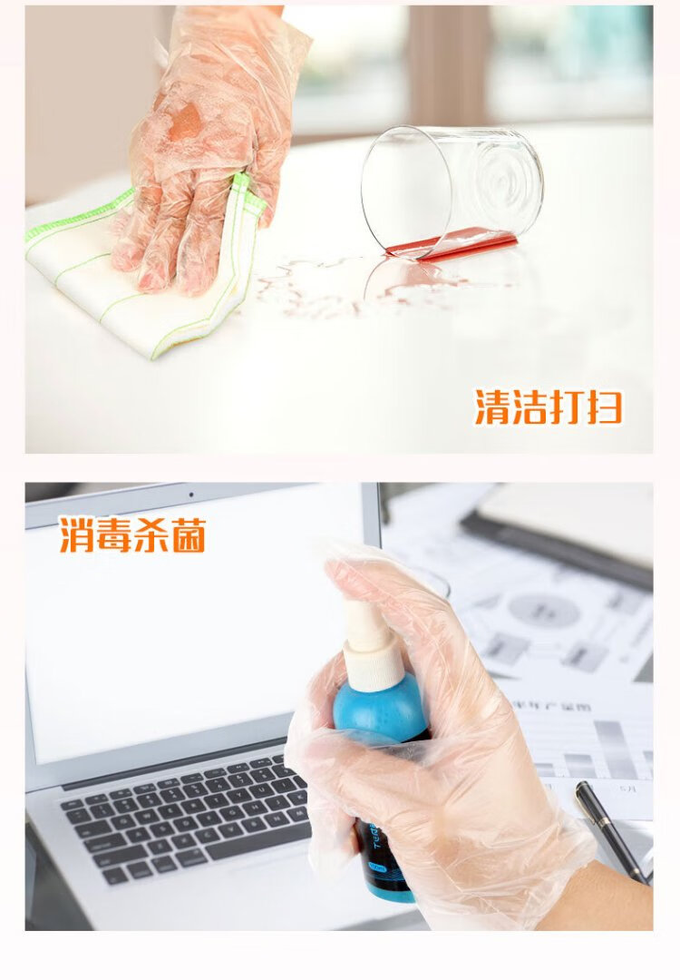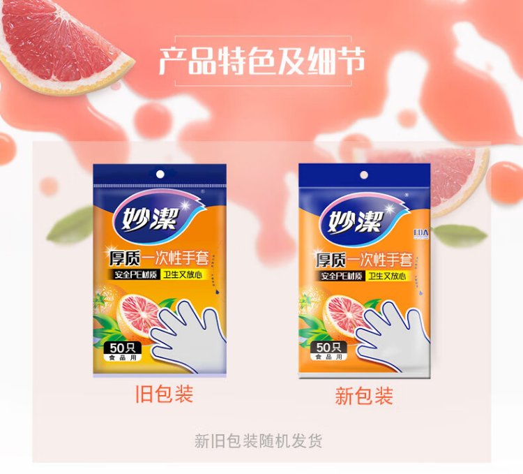 Miaojie Disposable Gloves Food Grade PE Thickened Plastic Kitchen Table Picnic 50 Pack
