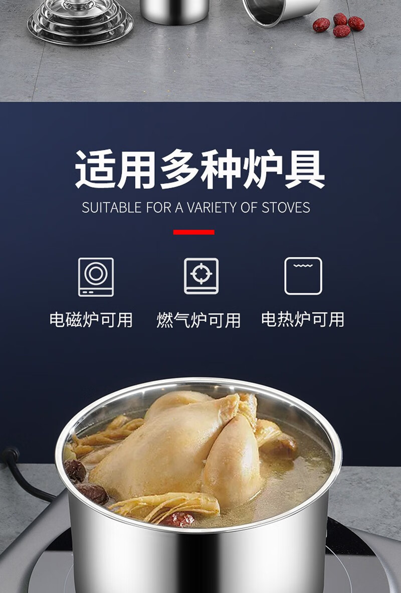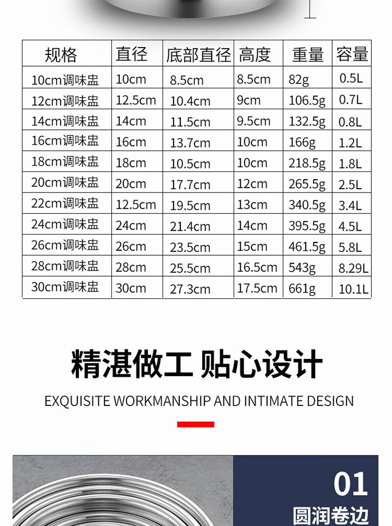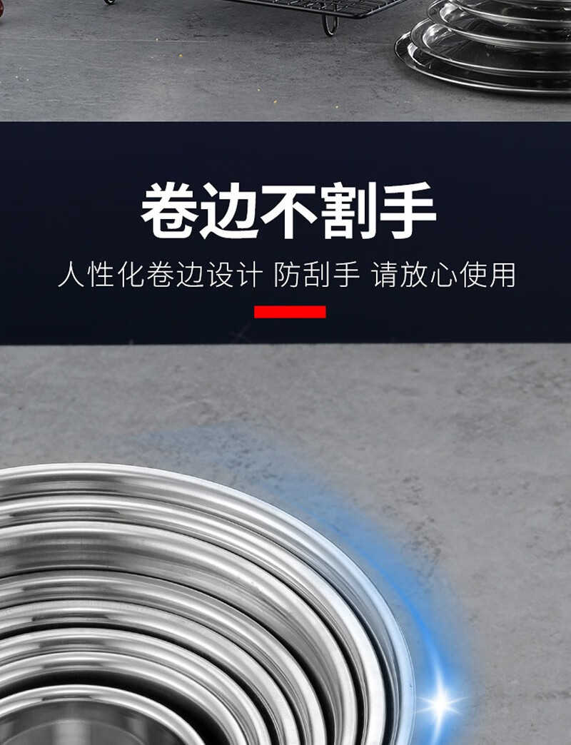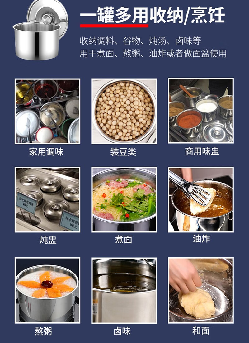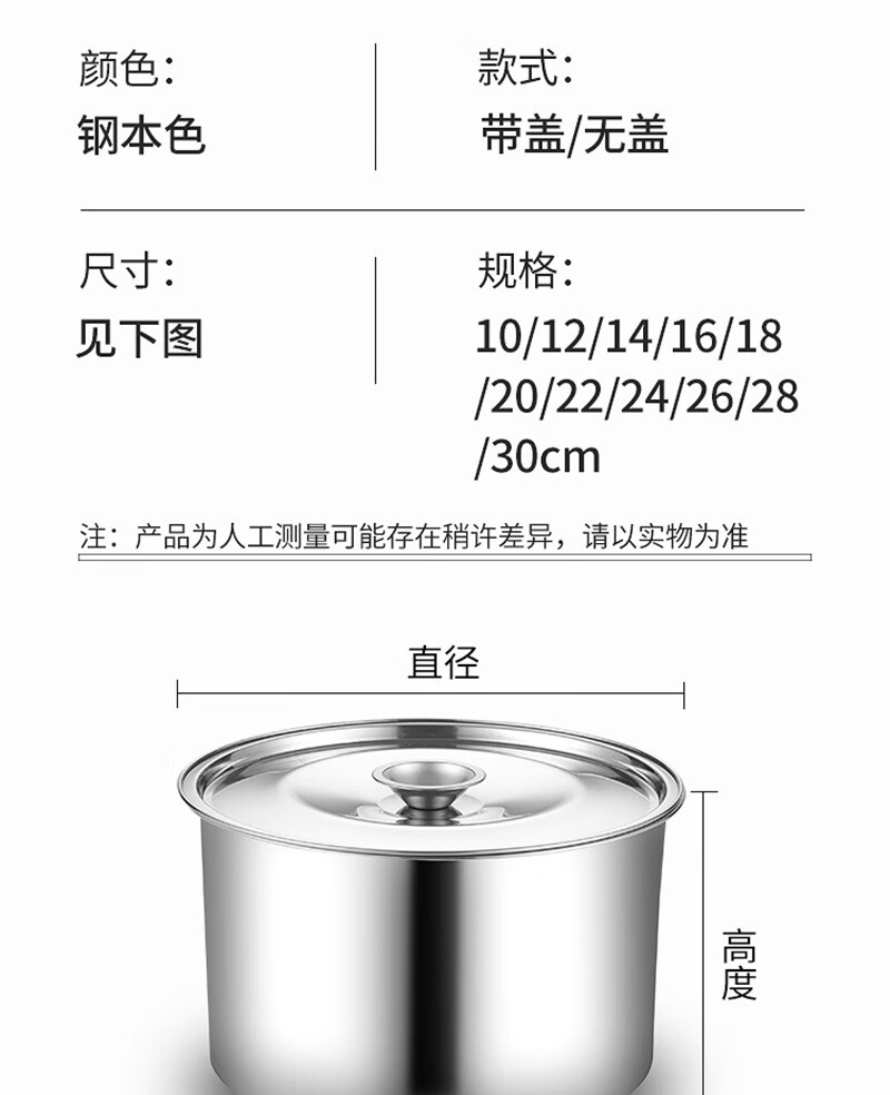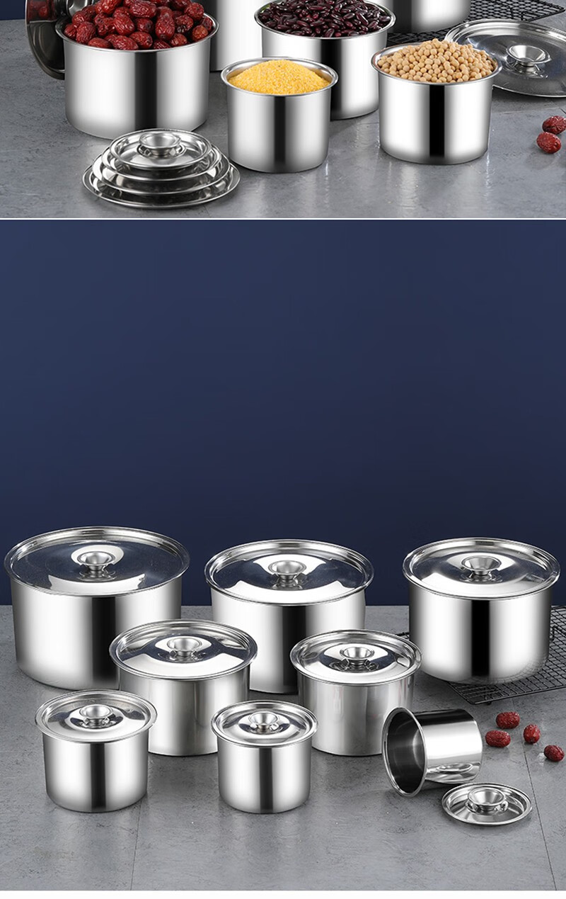 Stainless steel basin with lid kitchen round deep and thickened extra thick 14cm (with lid)