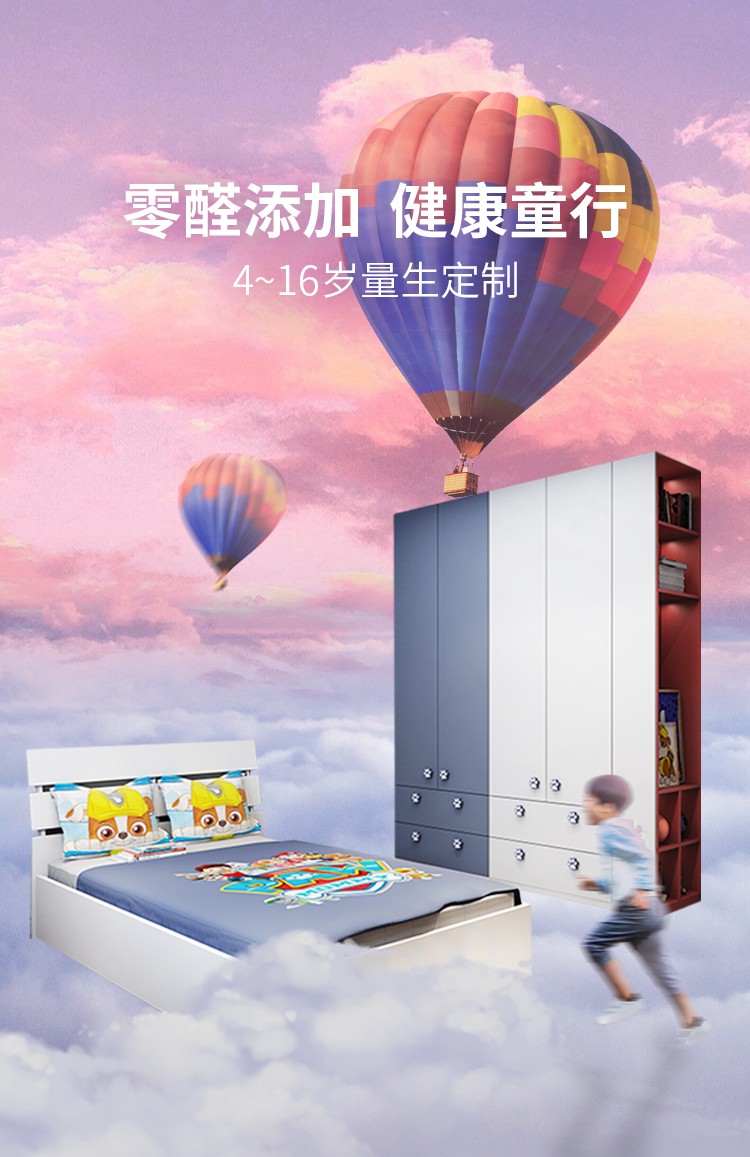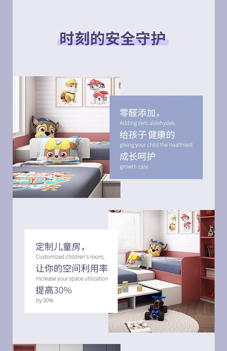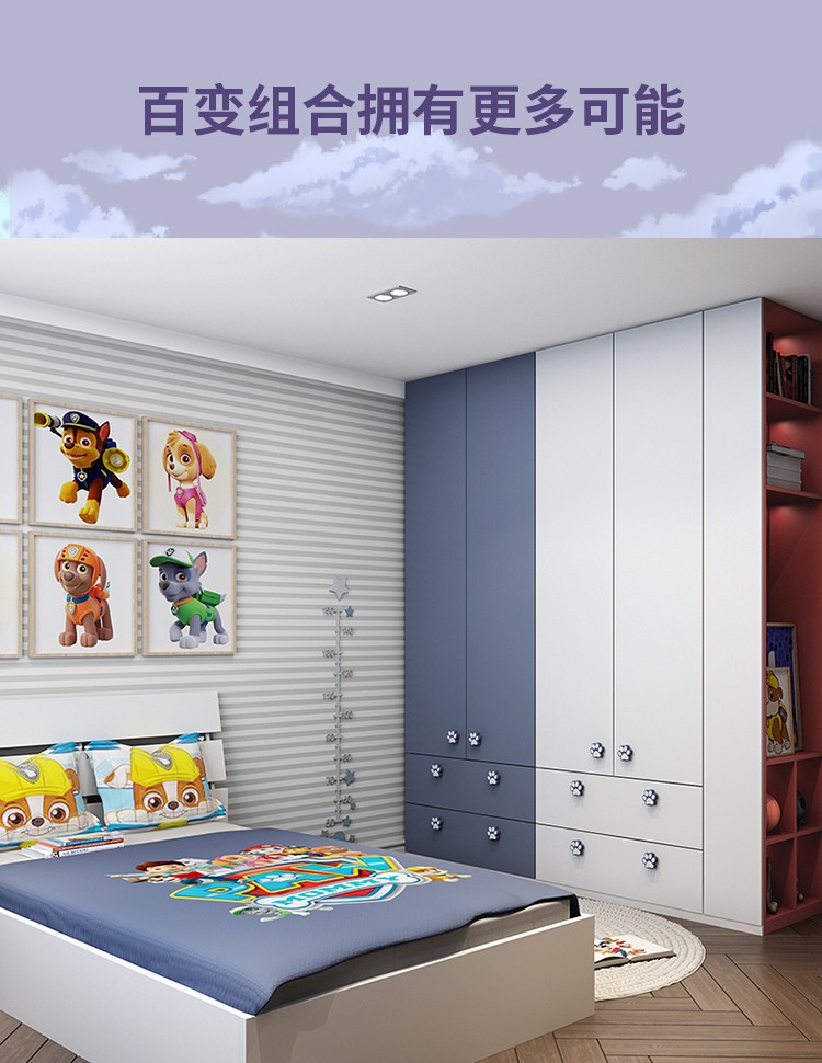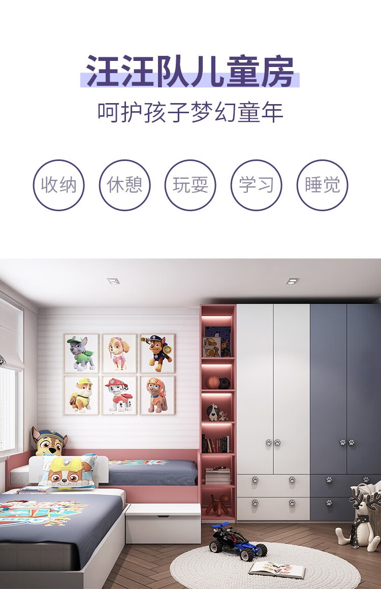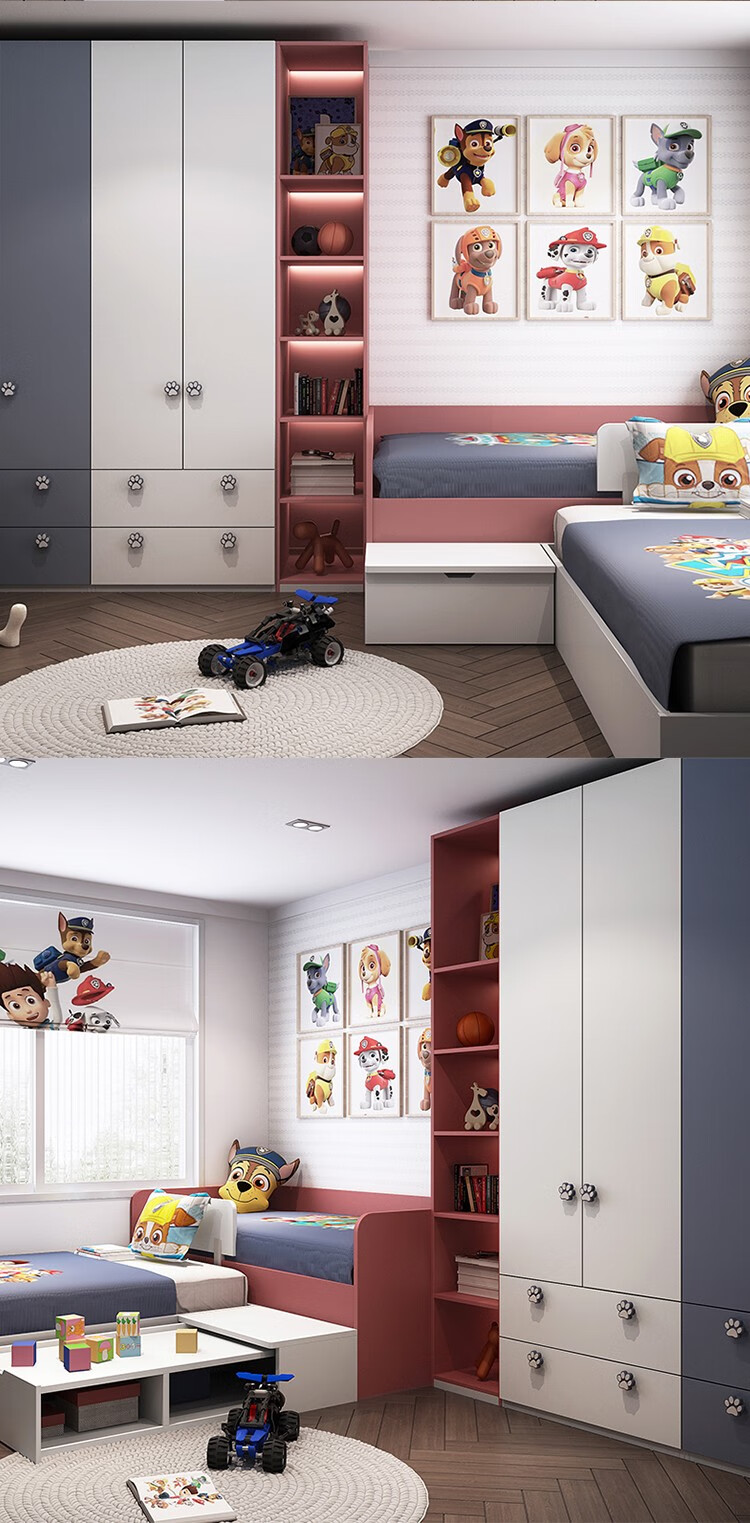 Zhibang whole house customized tatami bed, high and low bed children's bed, customized multi-functional Paw Patrol children's room, single bed + 3.84, wardrobe + mattress + four-piece set