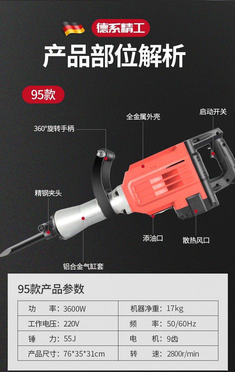 Dodi German Dodi 125 large electric pick industrial grade high power electric pick for demolishing concrete road large electric pick 95 electric pick 3600W + a set of pointed flat picks