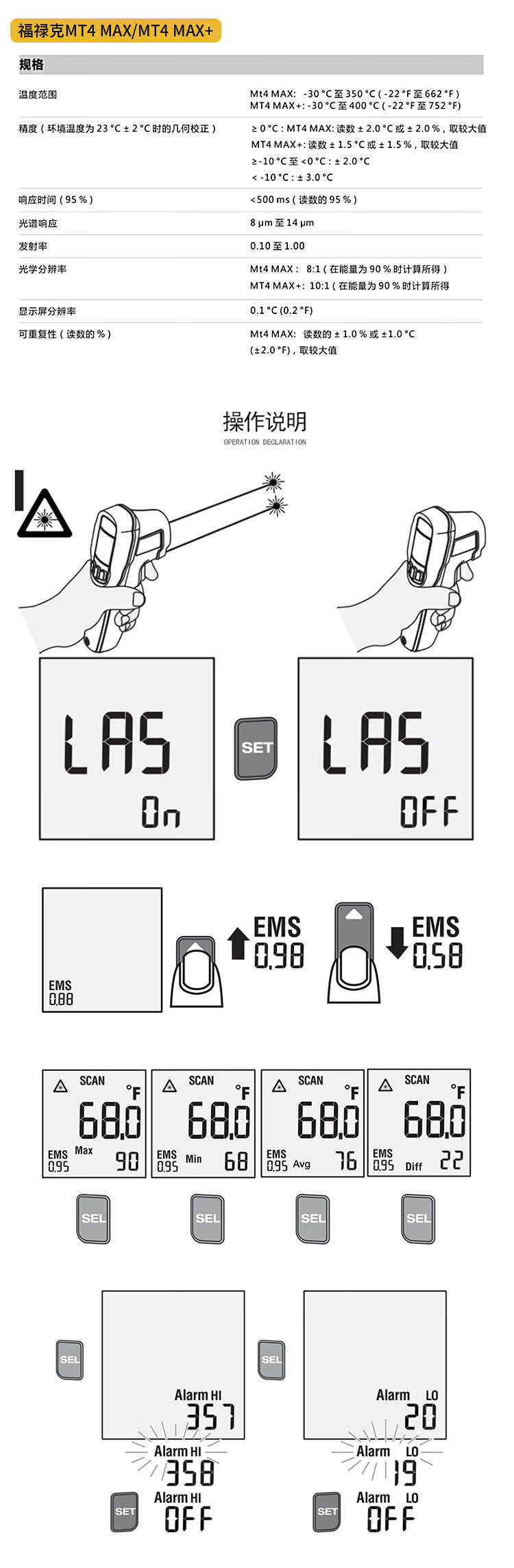 FLUKE MT4 MAX infrared thermometer, temperature gun point thermometer, electronic thermometer, temperature range -30~350 degrees