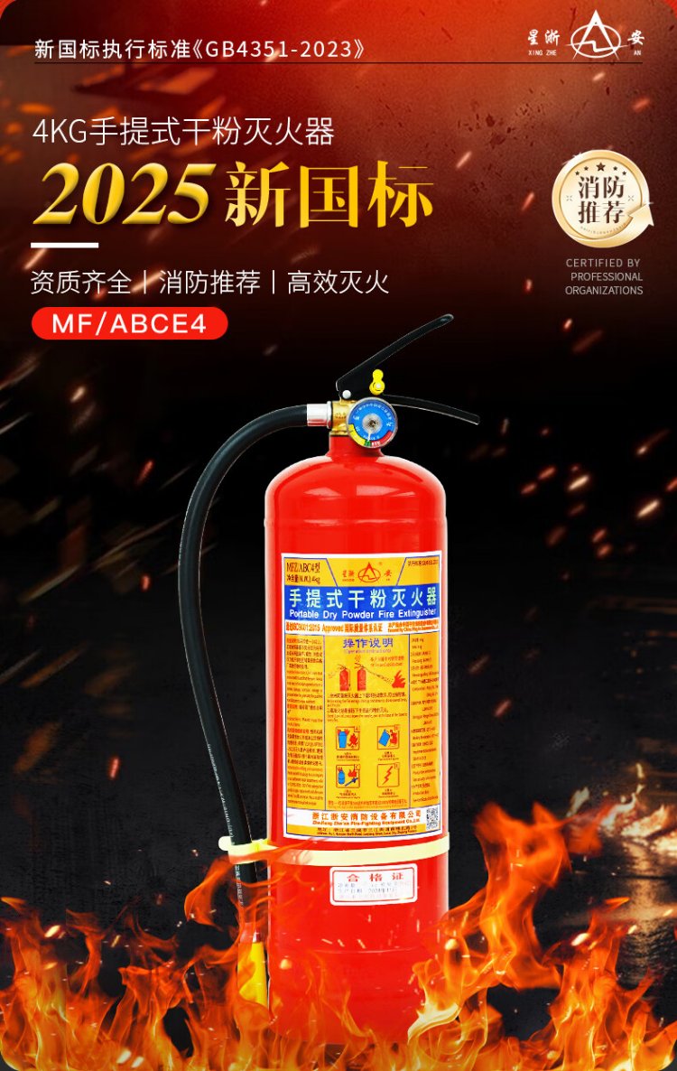 Xing Zhe'an 25-year-old new national standard dry powder fire extinguisher 4 kg portable commercial household national fire certification MF/ABCE4