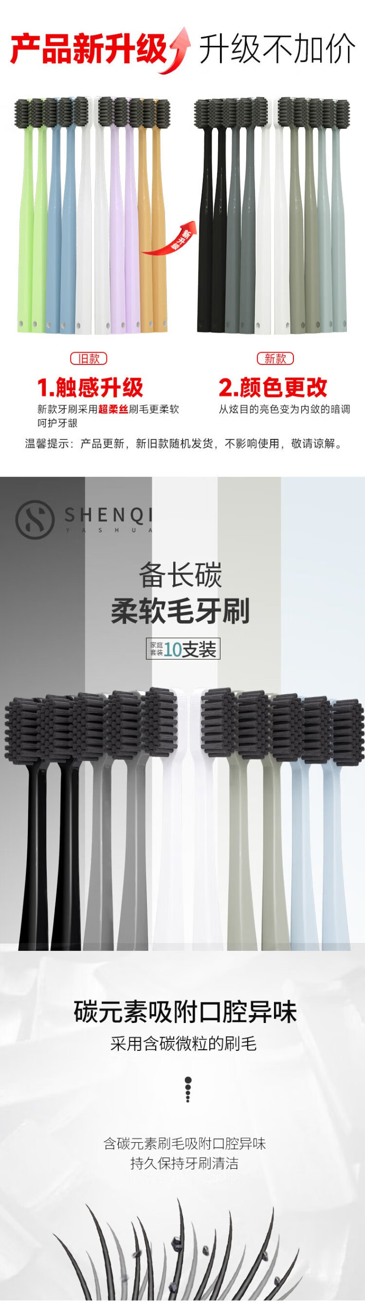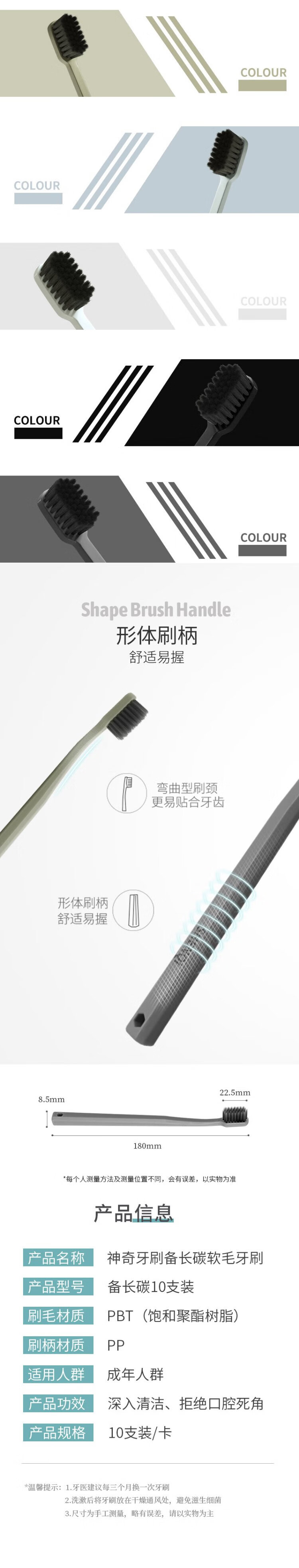 Magic Toothbrush Adult Toothbrush Set Charcoal Soft Bristle Toothbrush Adult Men Small Head Family Pack 10 Pieces Remove Stains and Deodorize