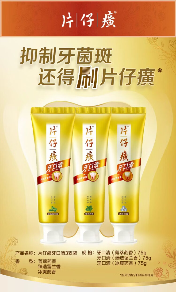 Pien Tze Huang Toothpaste Cleanses and Protects Gums, Cool Mint 75g + Premium Spearmint 75g + Essence Mint 75g