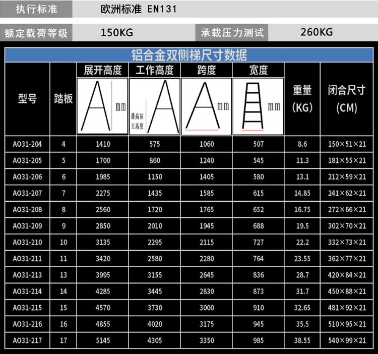 Golden Anchor European standard aluminum alloy double-sided ladder industrial ladder AO31-214 engineering ladder unfolded height 4.285 meters