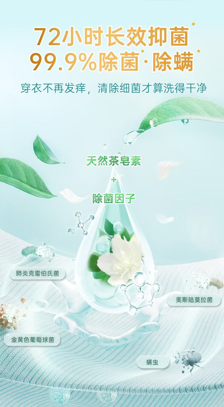 Liby Natural Tea Seed Laundry Detergent 6 pounds, sterilizing, removing mites and antibacterial, hand washing, machine washing, odor removal and stain removal, suitable for children