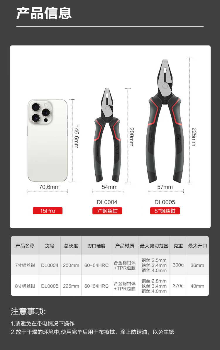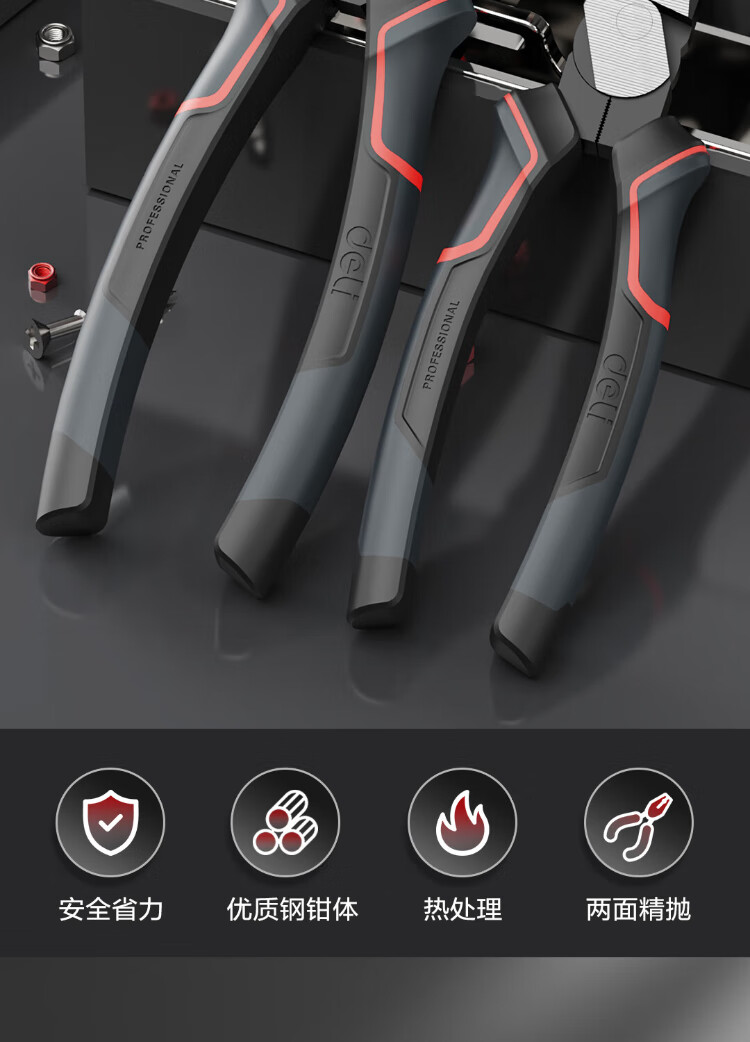 Deli labor-saving wire pliers chrome vanadium steel vise multifunctional flat nose pliers wire cutter 8 inches DL0005