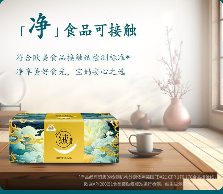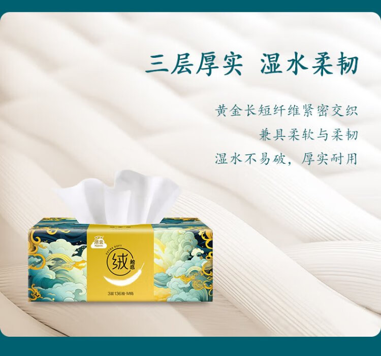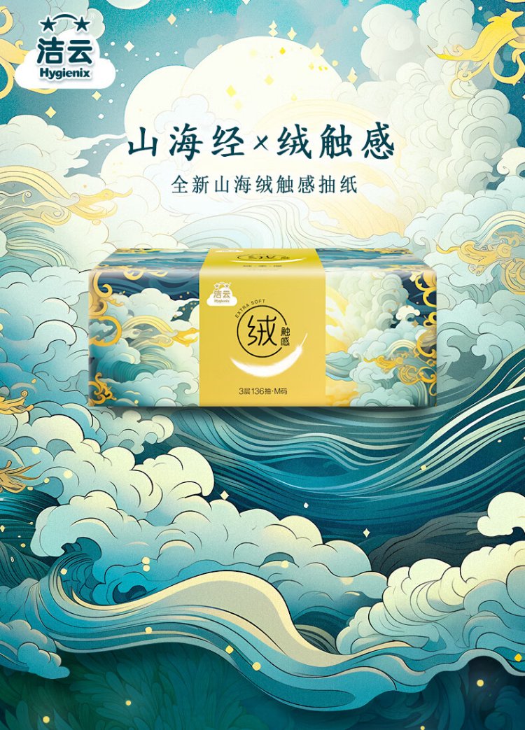 Jieyun tissue paper, mountain and sea velvet touch, 3 layers, 136 sheets*18 packs, M size, skin-friendly, wettable tissue, household napkin