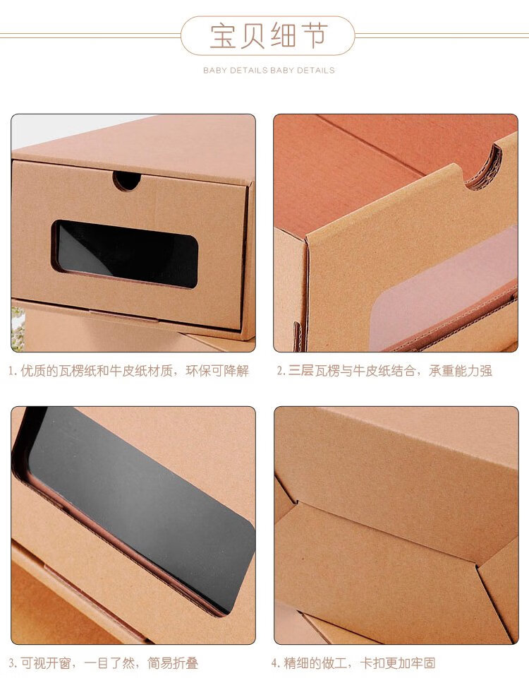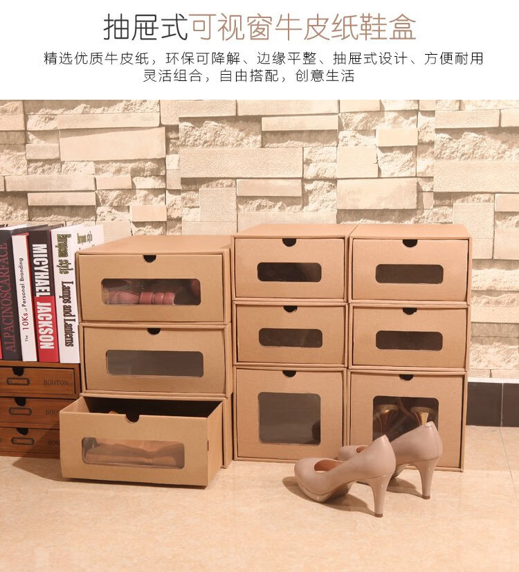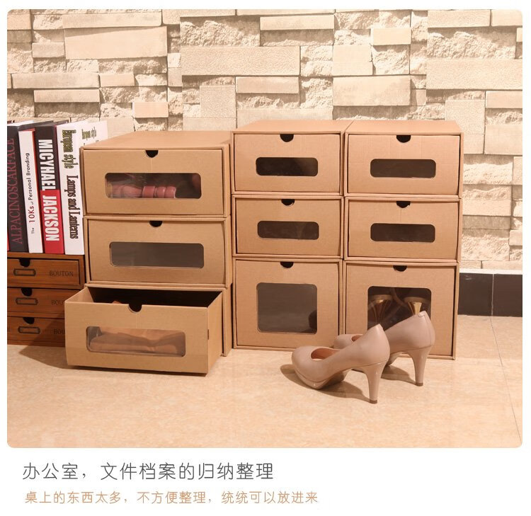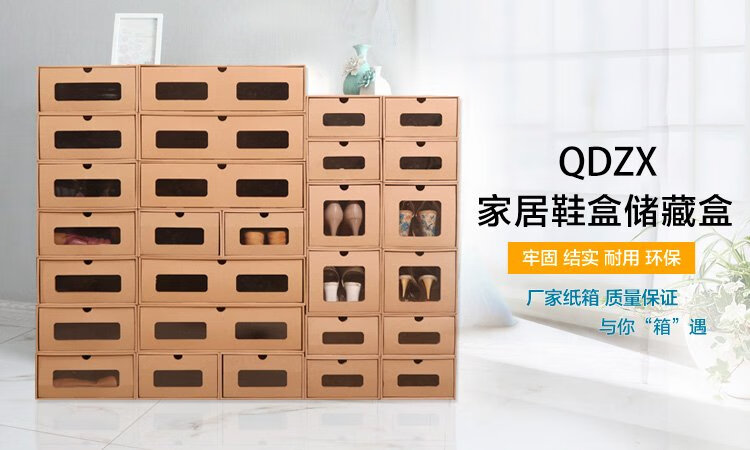 QDZX Men's Shoes Type A 6-Pack Shoe Box Shoe Cabinet Transparent Drawer-Type Paper Box Thickened Desktop Storage Box Shoe Packaging Box