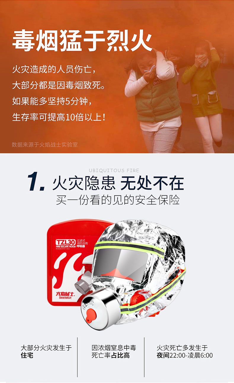 Flame warrior gas mask fire smoke mask filter self-rescue respirator fire mask TZL30 full fit version