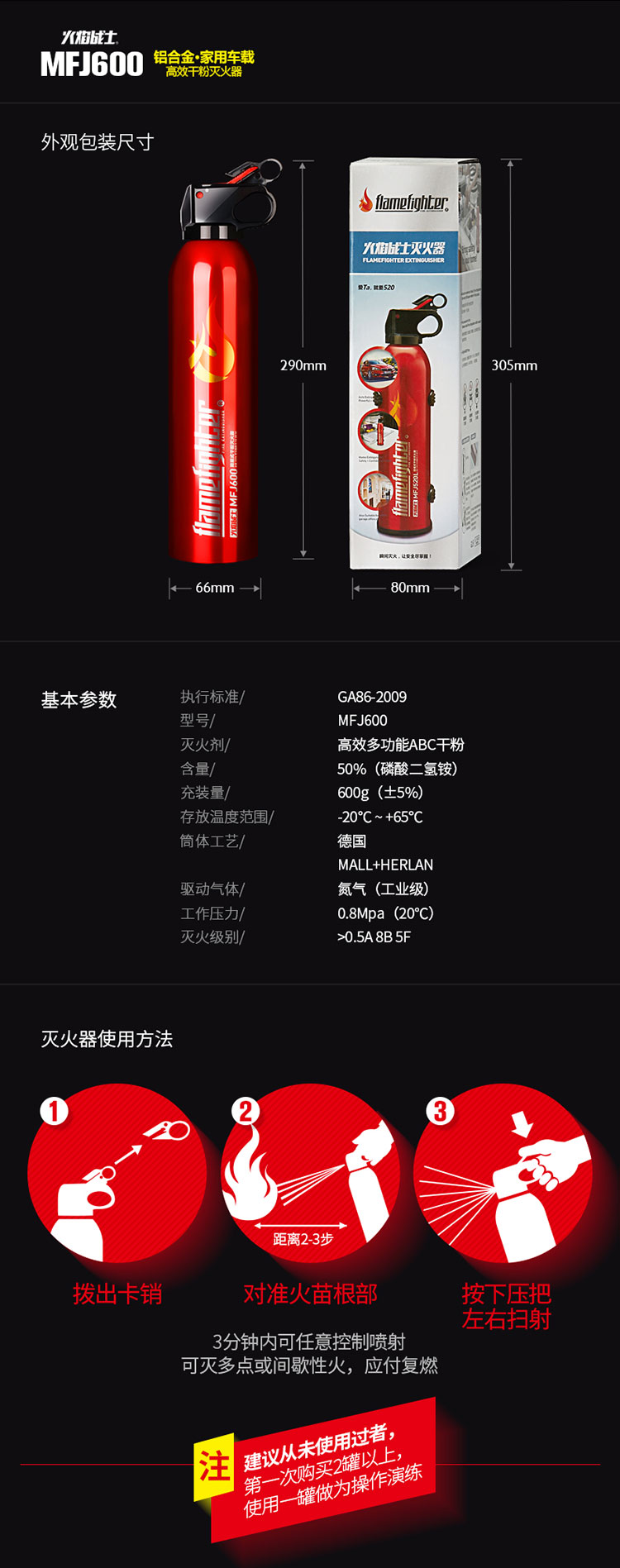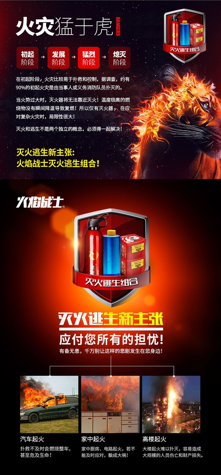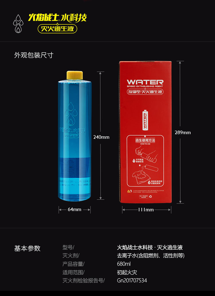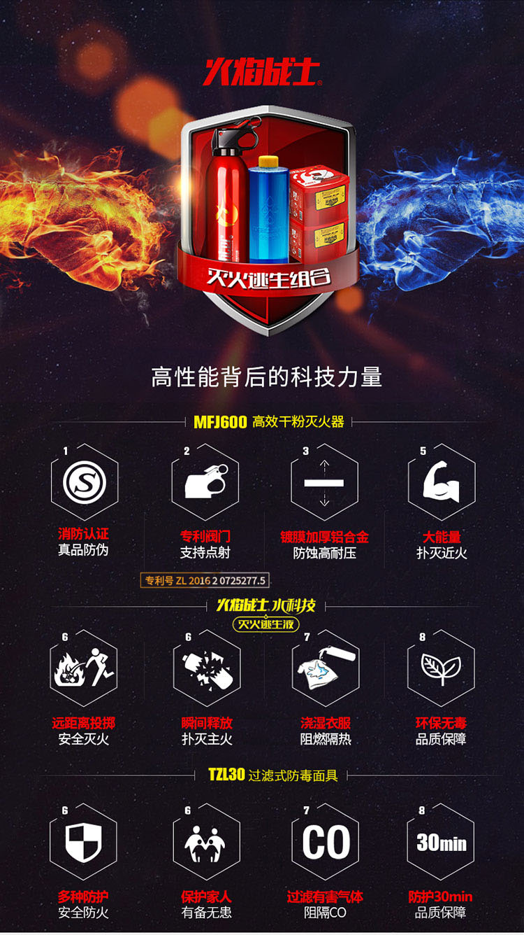 Flame Warrior Fire Extinguisher Gas Mask Car Home Furnishing Fire Escape Emergency Four-piece Set (600G Dry Powder + Escape Mask X2 + Water-based Environmentally Friendly Escape Bottle) FTZ-100