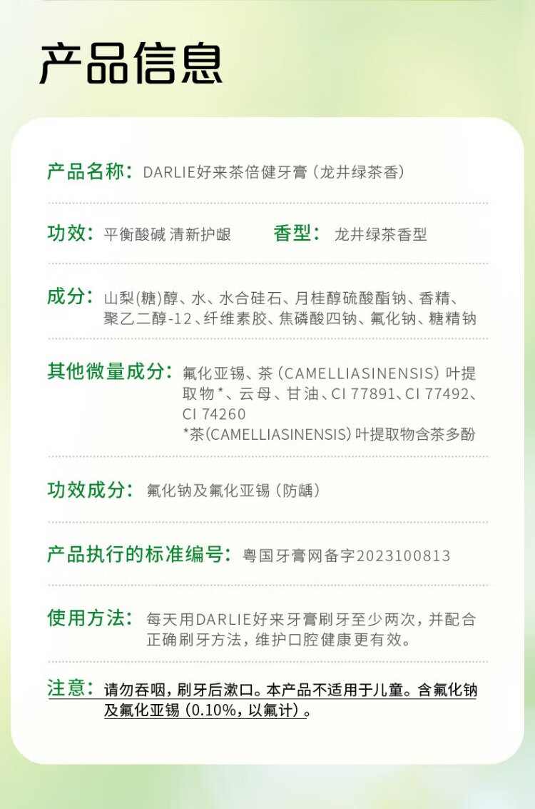 Haolai (DARLIE) (formerly Black) TeaBeijing Longjing Green Tea Toothpaste Fresh Breath Protects Gums and Strengthens Teeth 120g New and Old Random