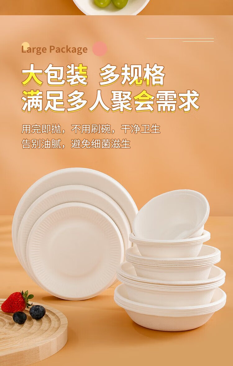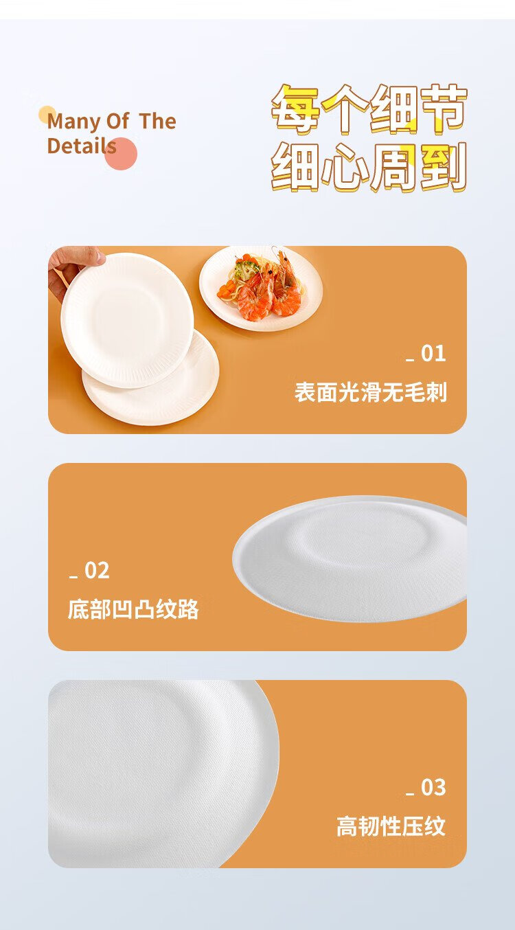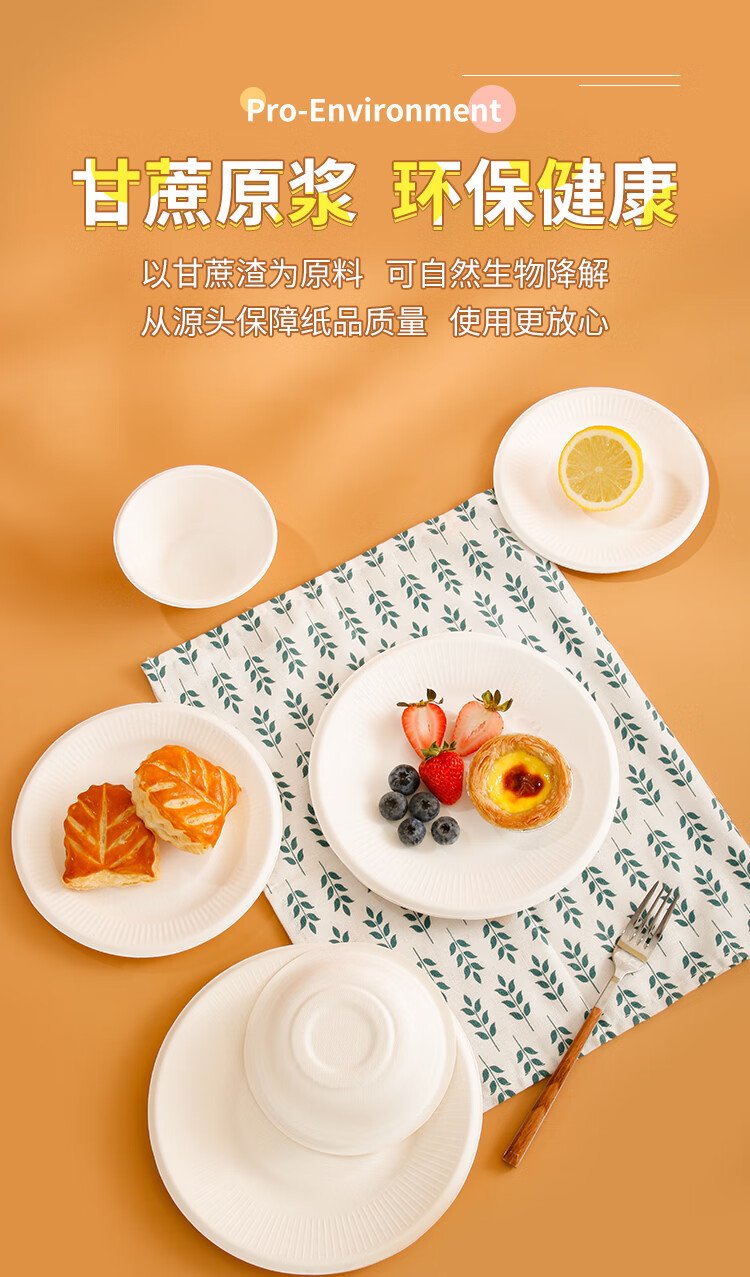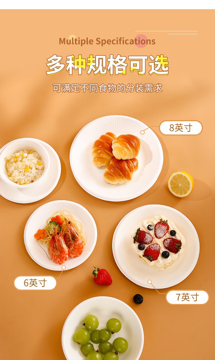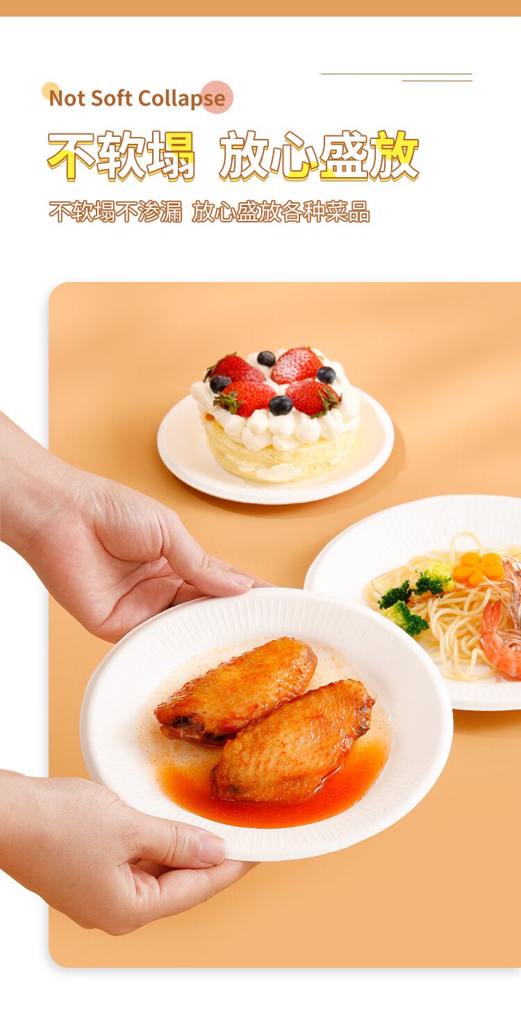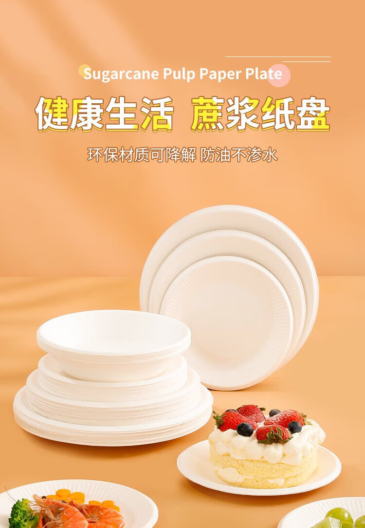 Youao disposable plates 8 inches, 30 pieces, large thickened biodegradable paper plates, waterproof and oil-proof barbecue tableware supplies