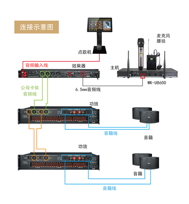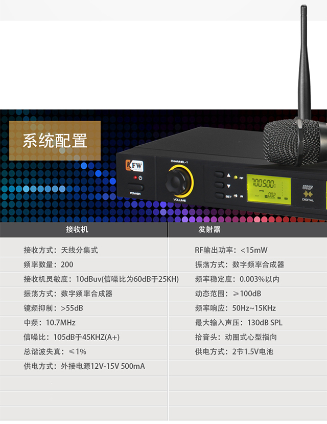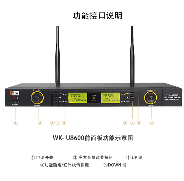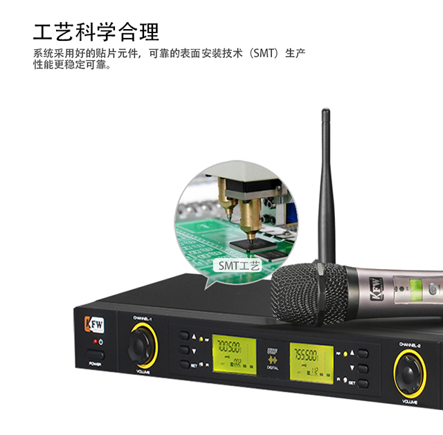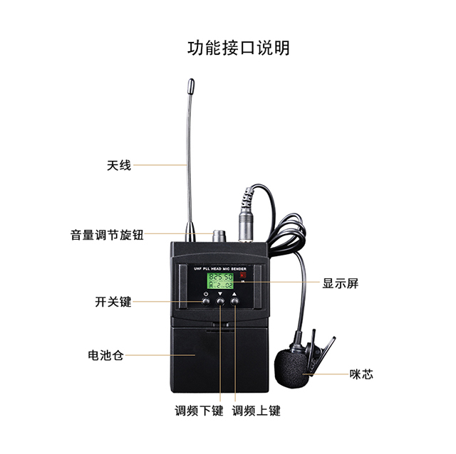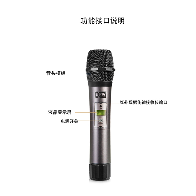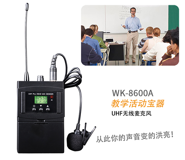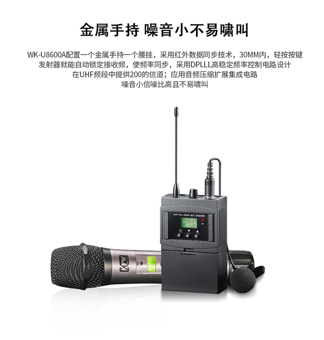 KFW WK-U8600A wireless microphone, held in one hand and hung on the waist (collar, headband)