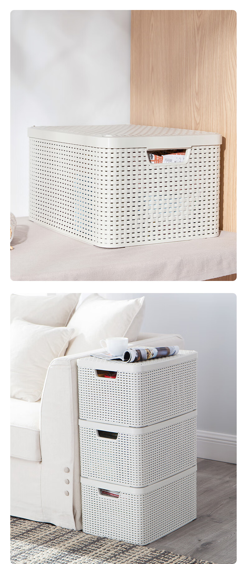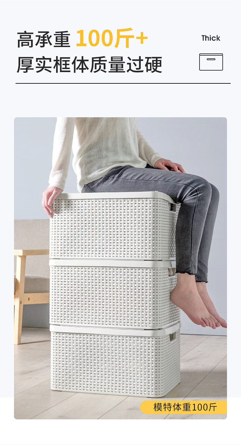 JEKO&JEKO Storage Basket Clothes Storage Basket Dirty Clothes Basket Imitation Rattan Storage Box Organizing Box Storage Box Storage Box Milky White