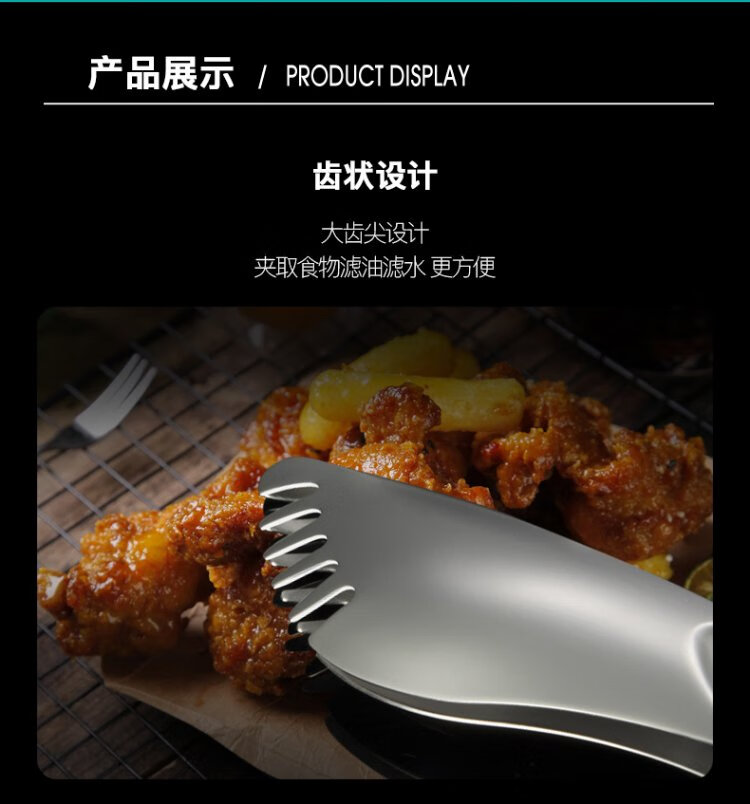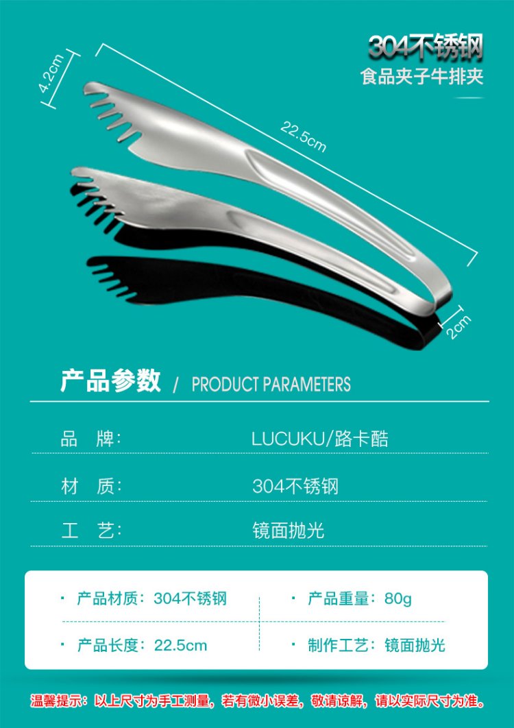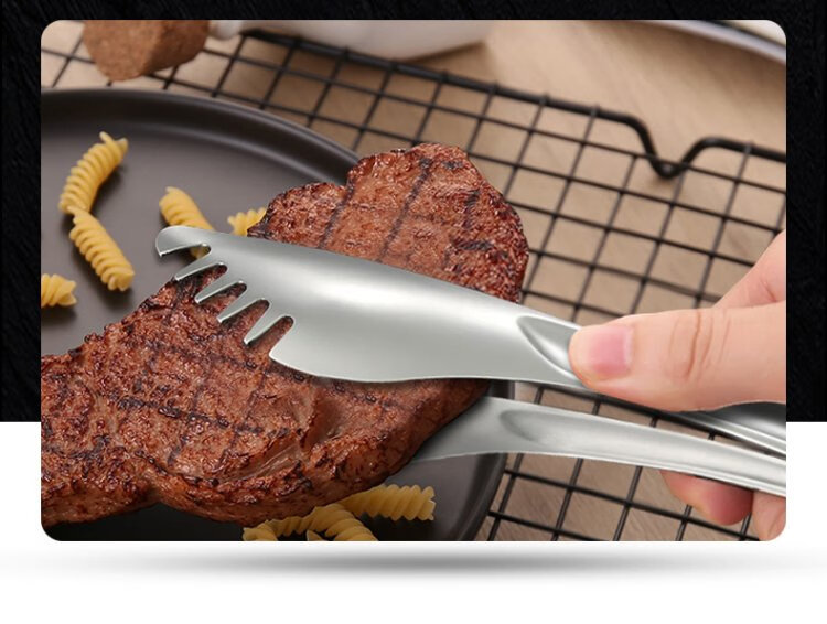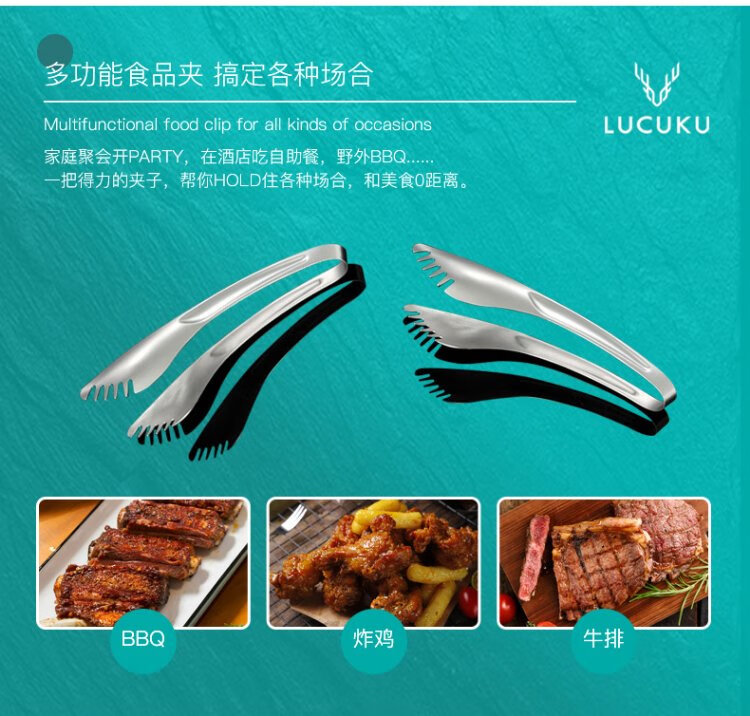 LUCUKU 304 stainless steel food tongs, steak tongs, thickened buffet barbecue bread tongs, hotel food tongs