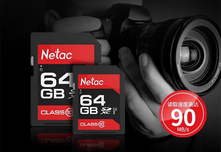 Netac 64GB SD memory card U1 C10, reading speed up to 90MB/s, high-speed continuous shooting, full HD video recording, SLR digital camera & video camera memory card