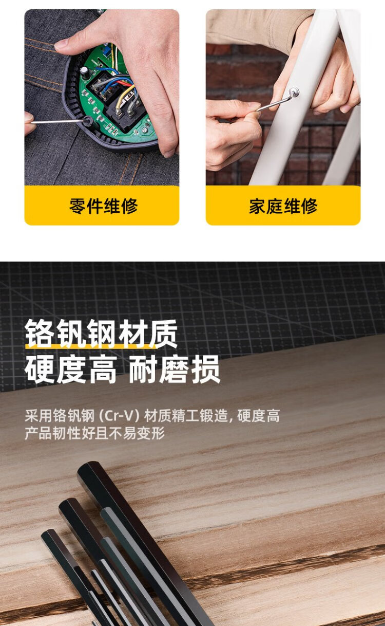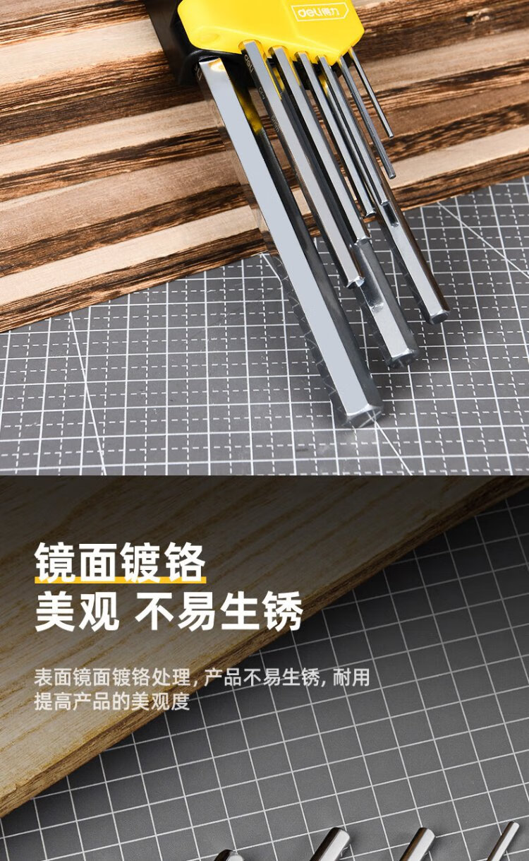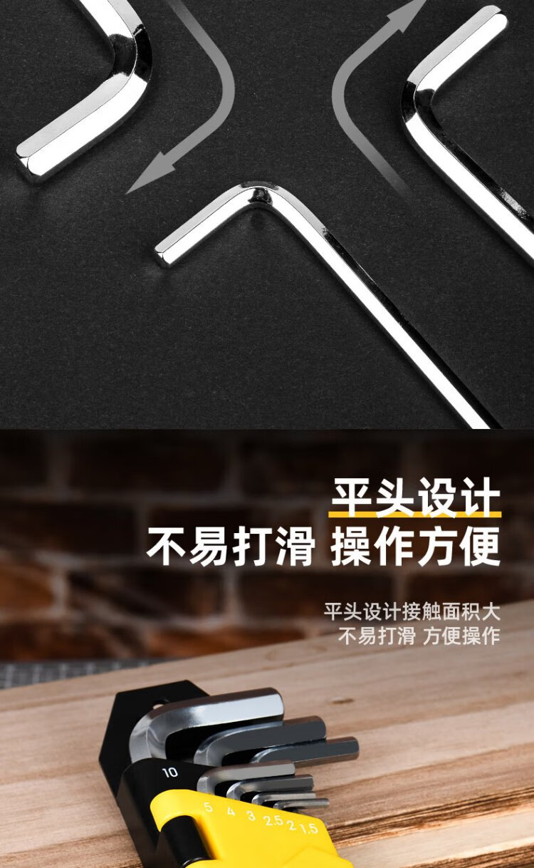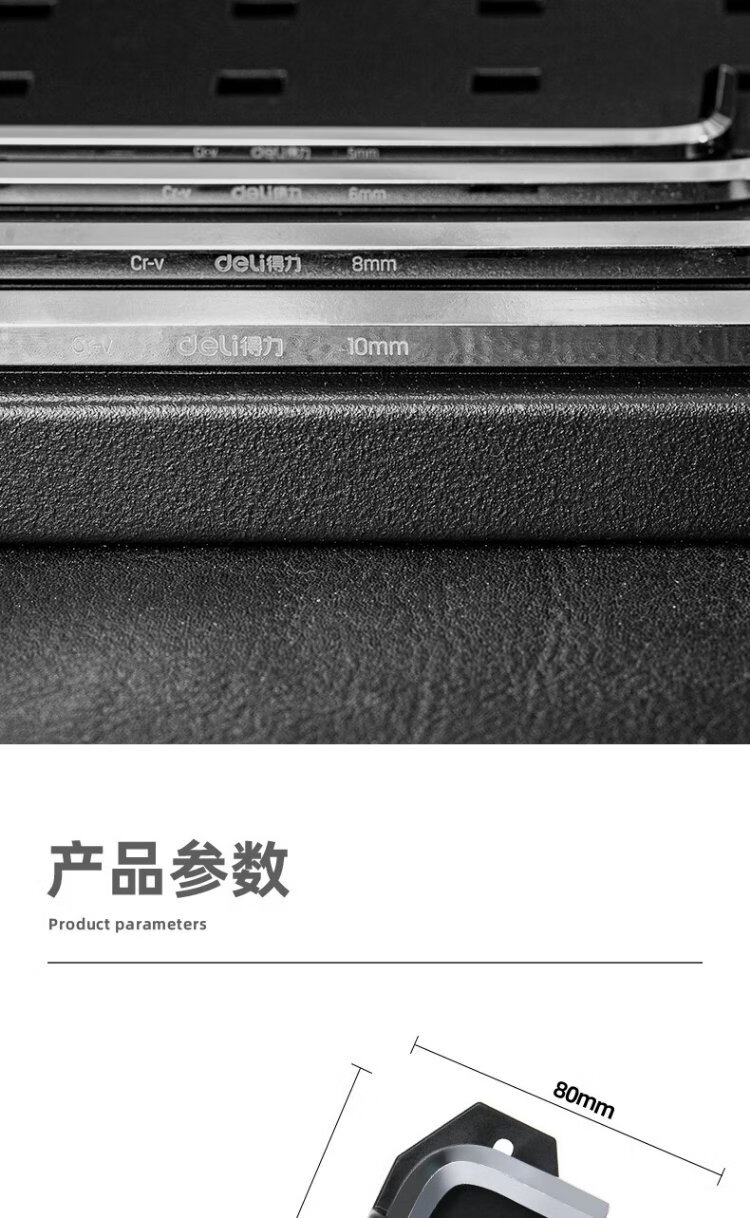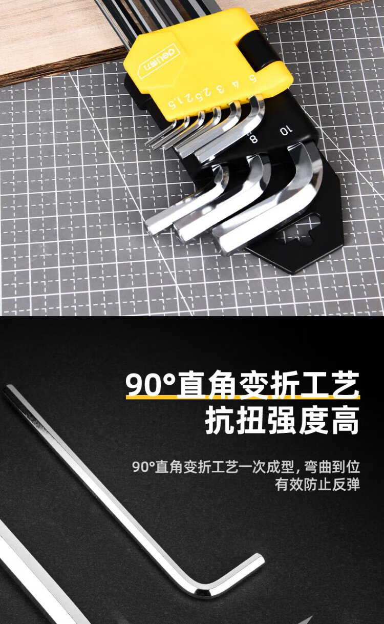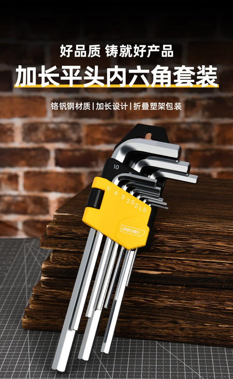 Deli long flat head hexagonal wrench set chrome vanadium steel L-shaped hexagonal screwdriver wrench 9-piece set DL2173