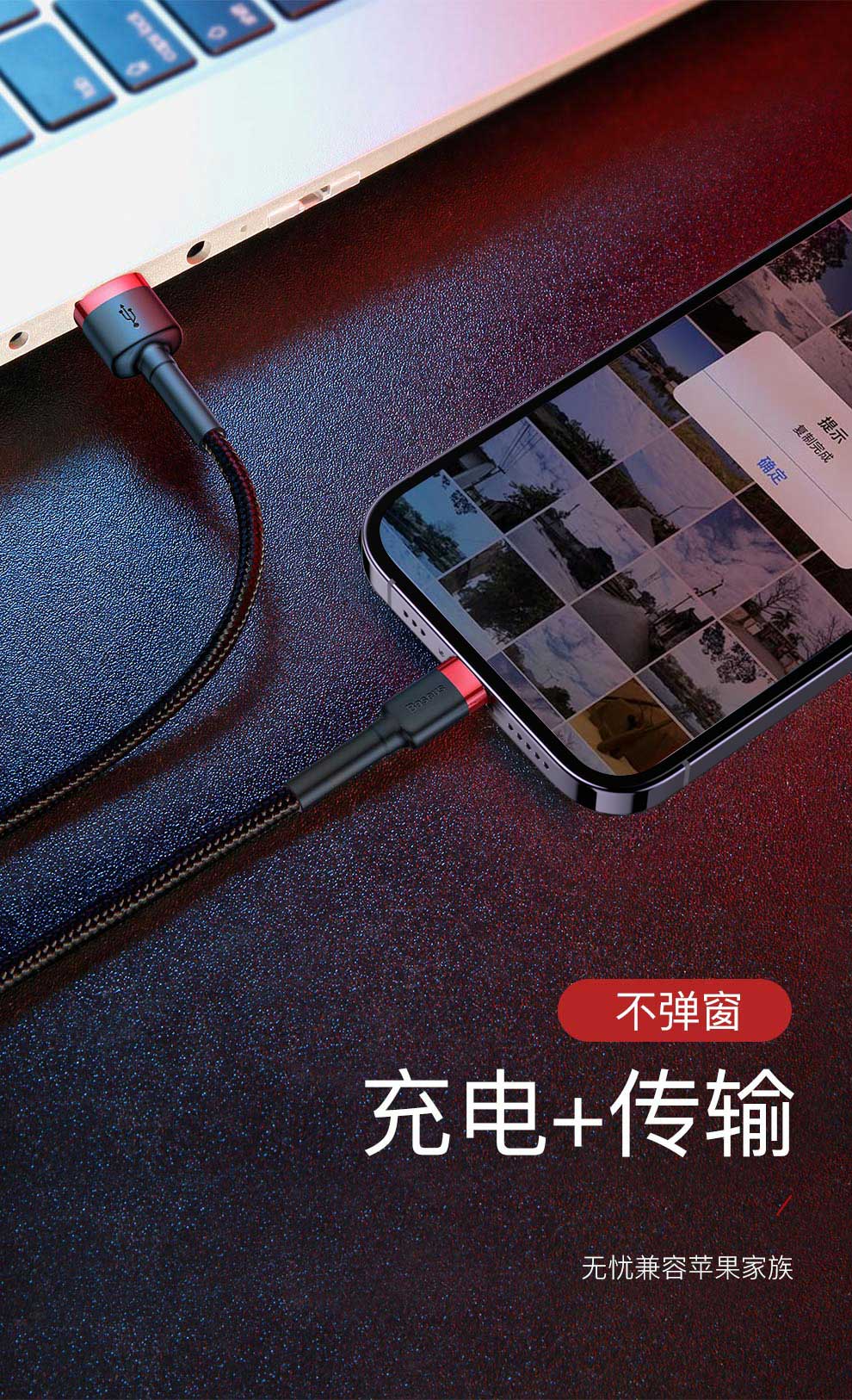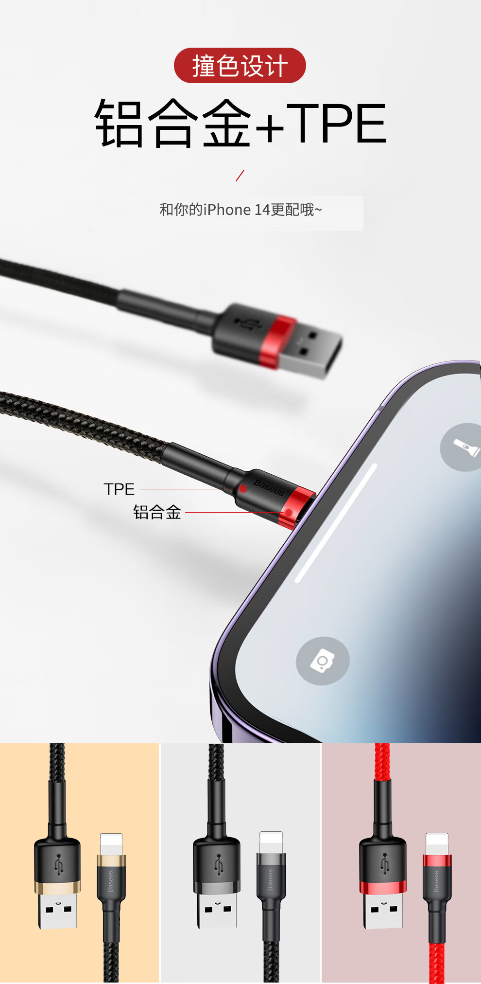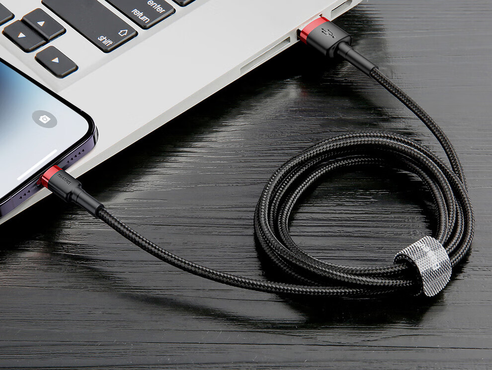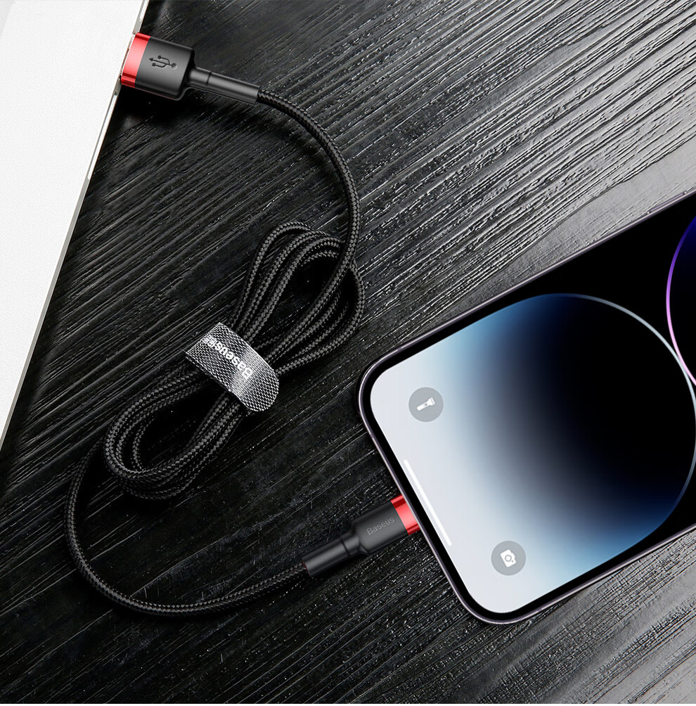 Baseus Apple data cable mobile phone charger power cord suitable for iPhone14/13/12/7/8/XR new iPad/Air/Mini3/4 dark gray black 2 meters
