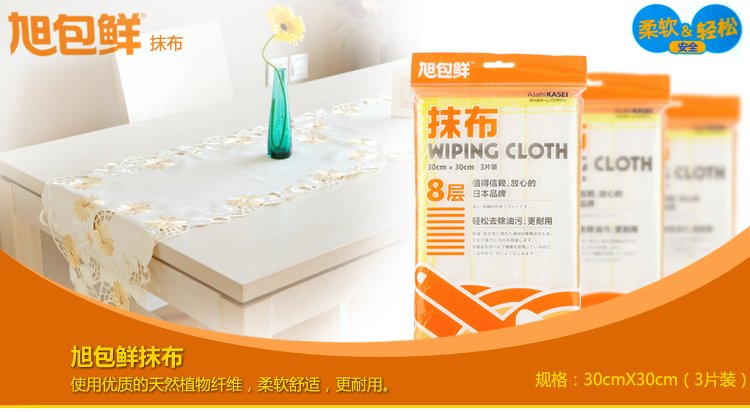 Asahi Baoxian Japanese brand 8-layer dishwashing cloth 3-piece set kitchen household strong water-absorbent non-woven fabric dishwashing tools