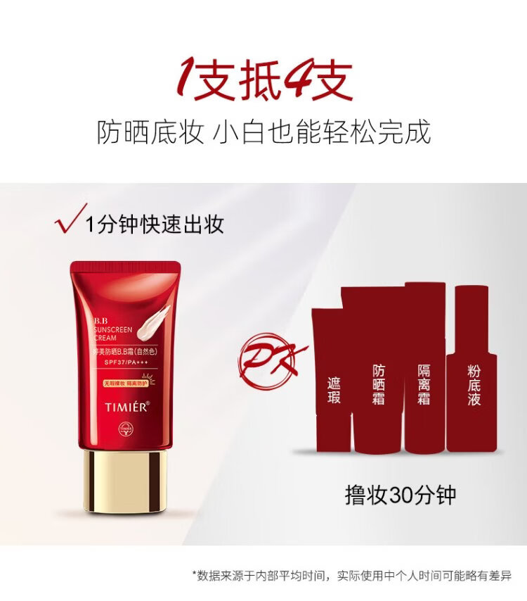 Tingmei (TIMIER) sunscreen red bb cream isolation concealer three-in-one non-removing makeup Jingdong self-operated store authentic liquid foundation New Year gift
