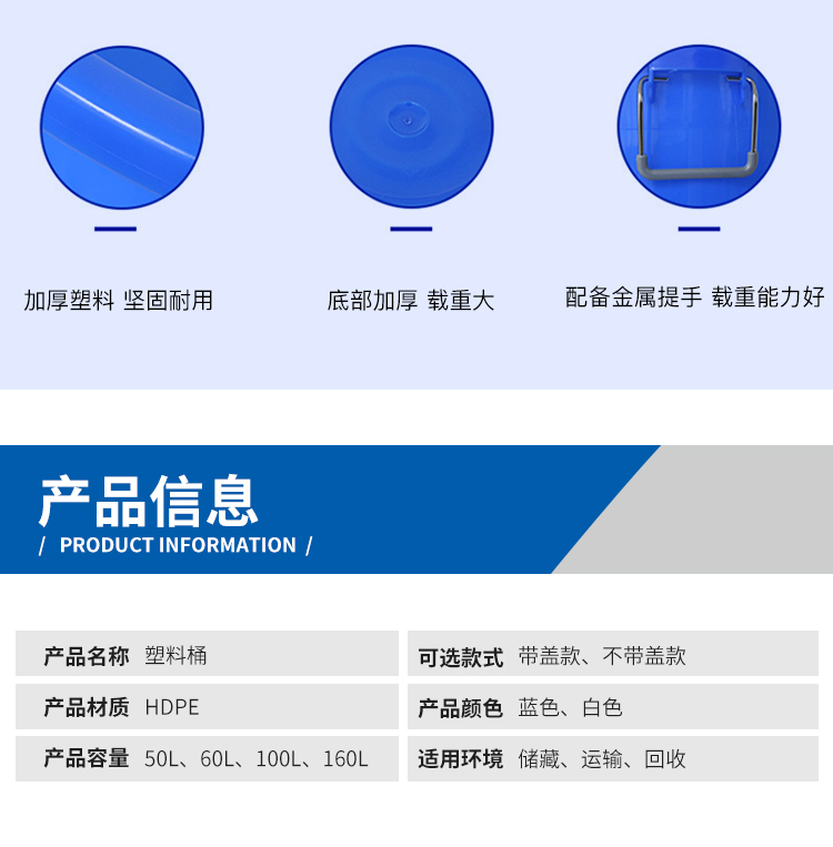 Kelibang large plastic bucket round storage bucket large capacity bucket hotel kitchen industrial sanitation property trash can 100L blue without lid KB3001