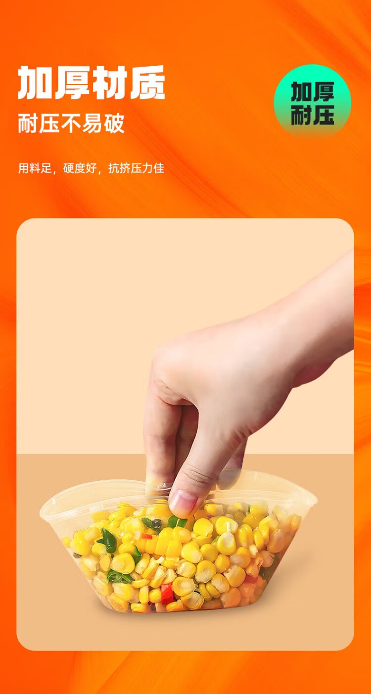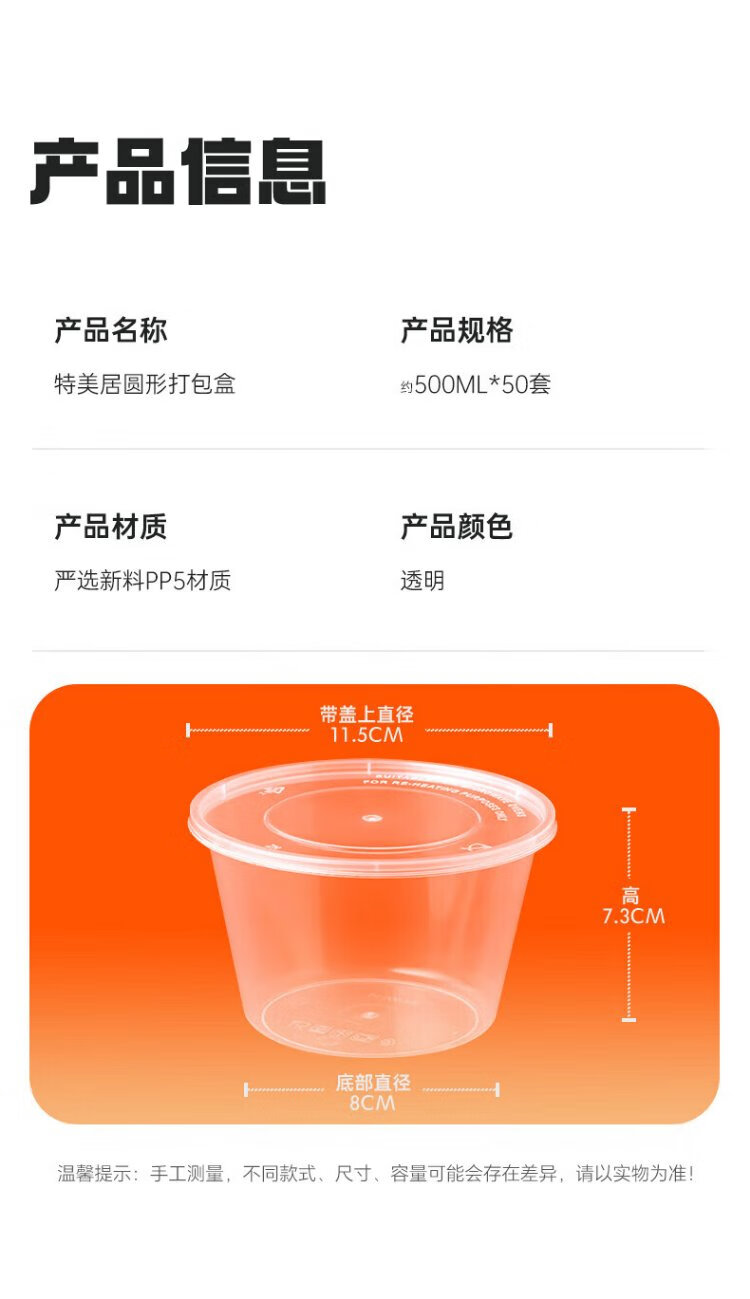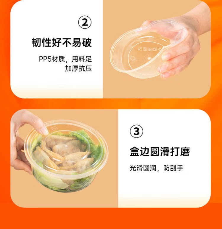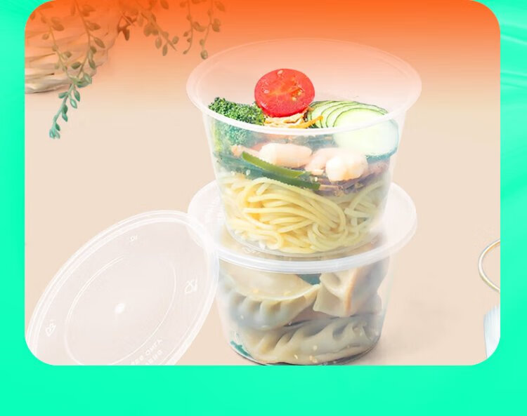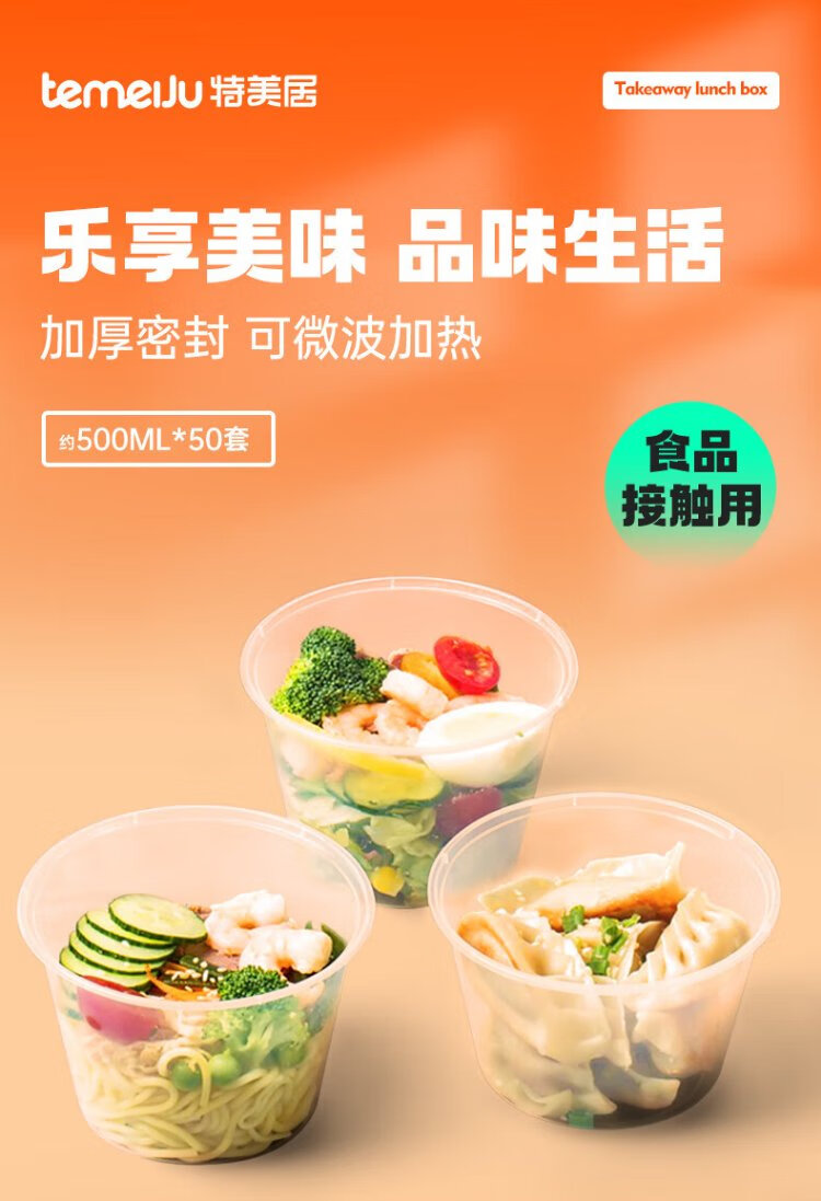 Temeiju disposable lunch box round transparent plastic fast food box thickened lidded packaging box soup bowl 50 set 500 type