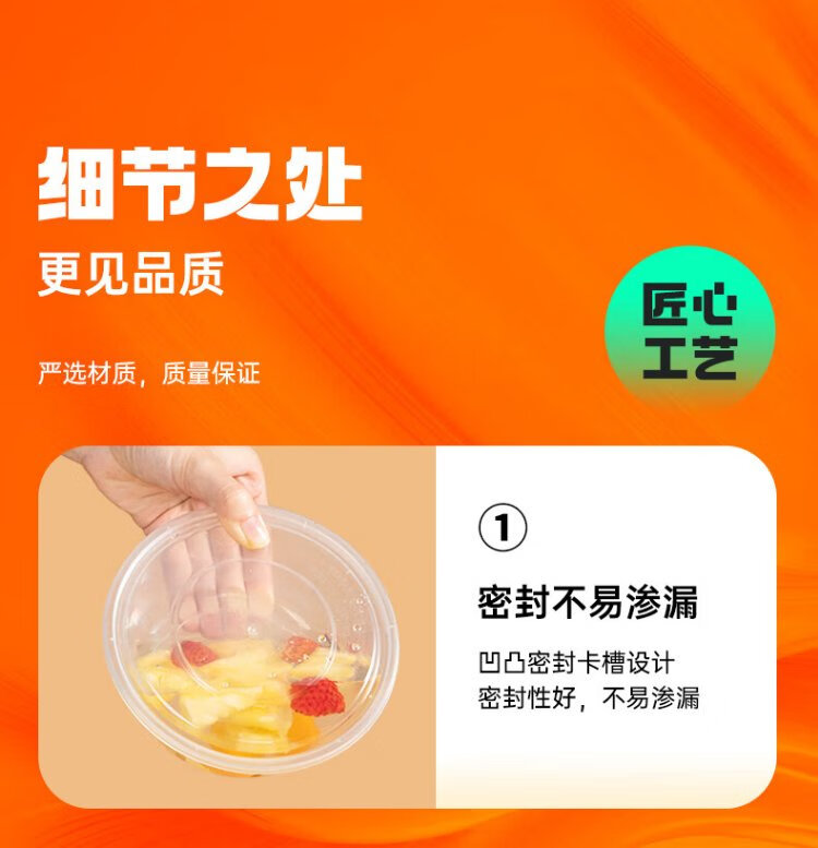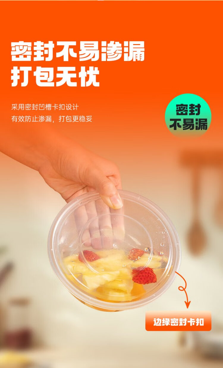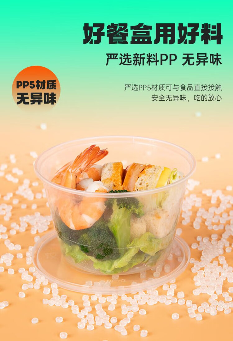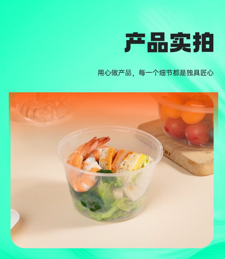 Temeiju disposable lunch box round transparent plastic fast food box thickened lidded packaging box soup bowl 50 set 500 type