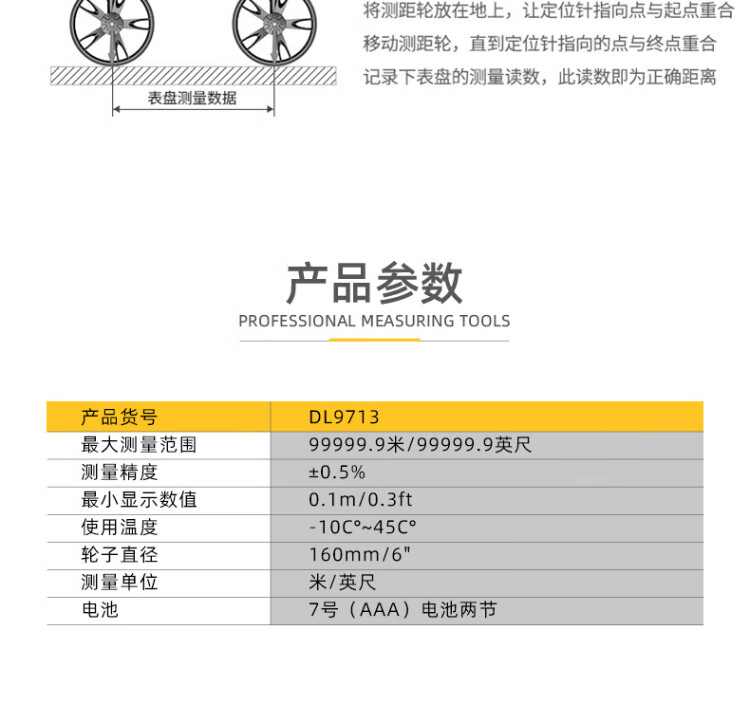 Deli wheeled distance meter roller distance meter electronic digital display distance measuring caliper handheld outdoor measuring caliper 50cm