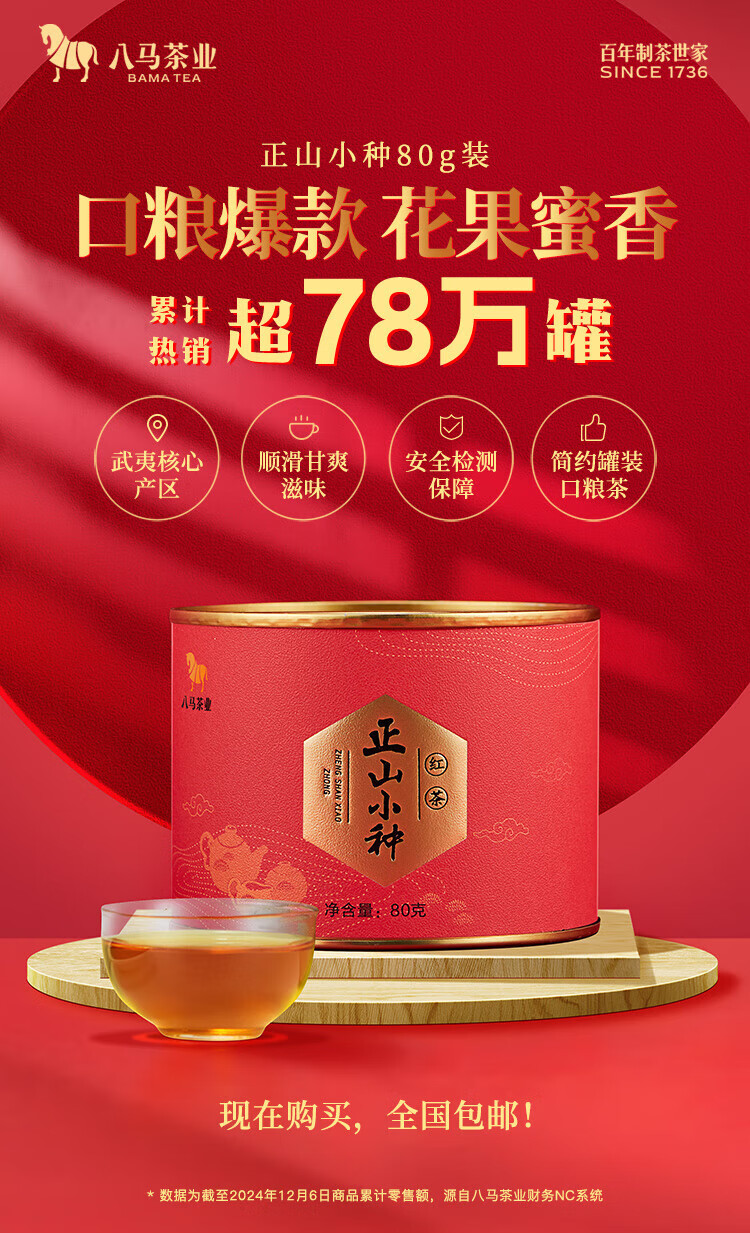 Bama Tea Black Tea Wuyishan Lapsang Souchong Grade 1 80g canned tea for your own consumption