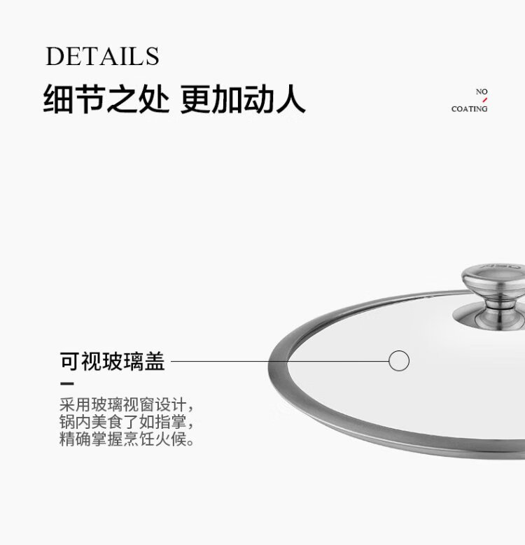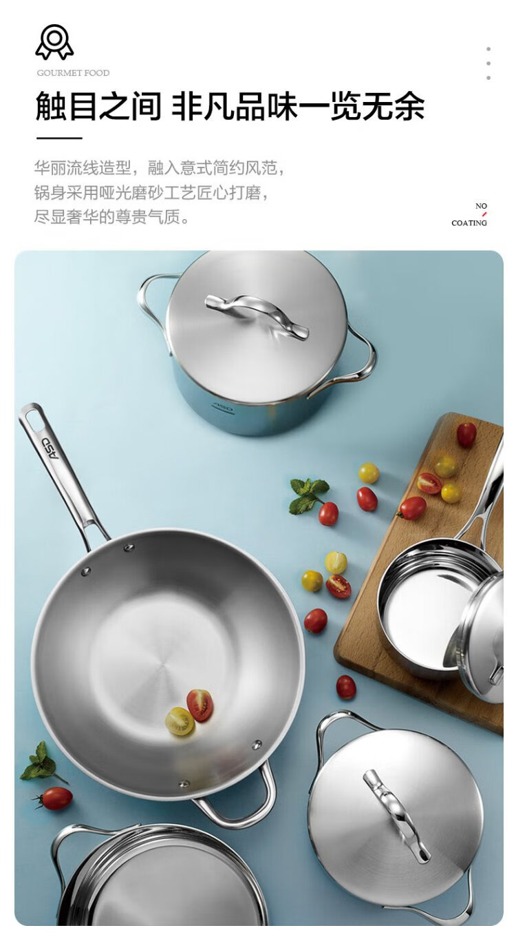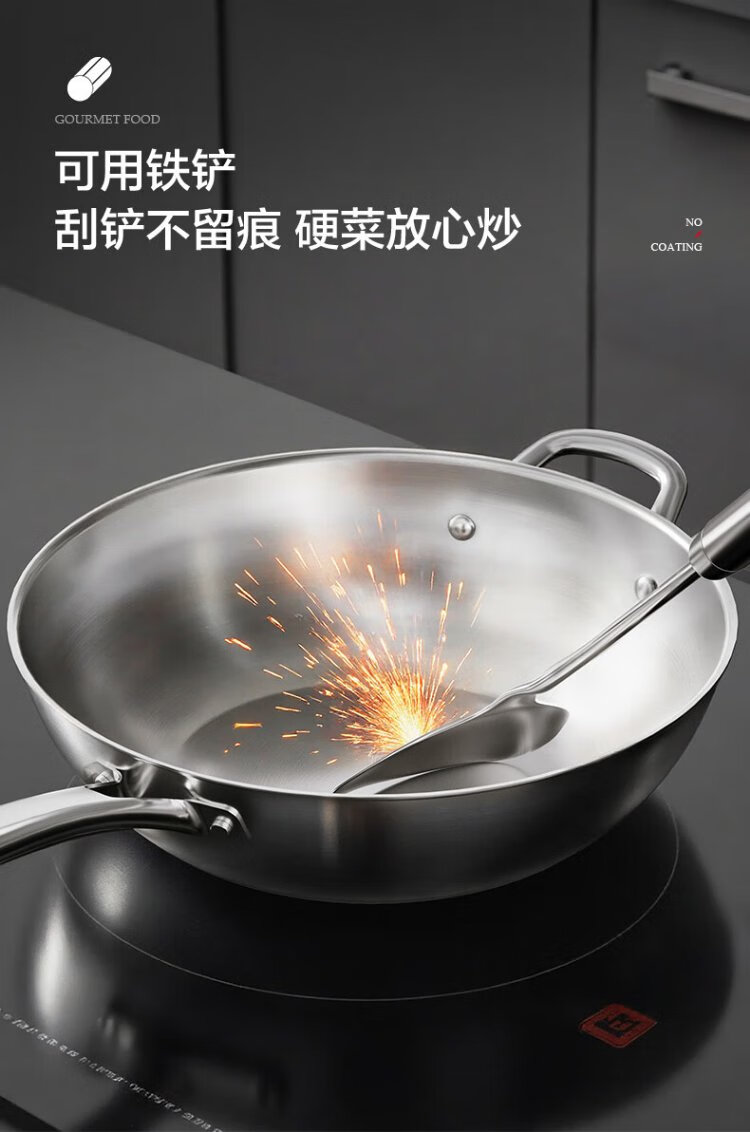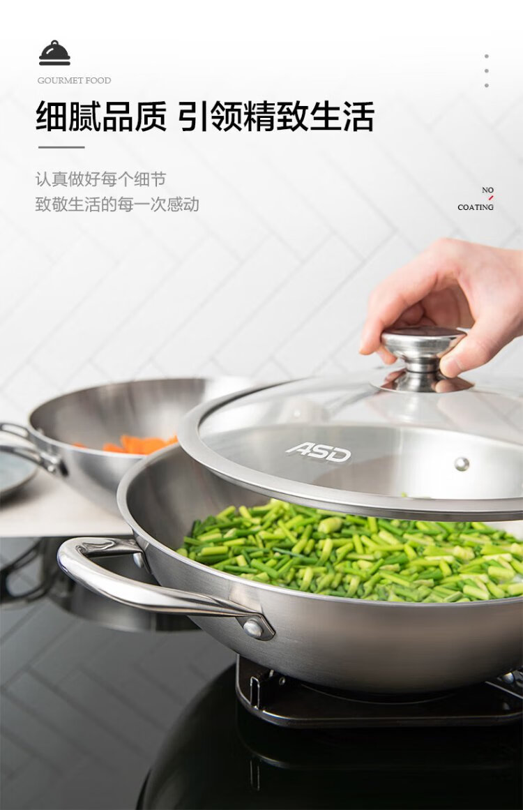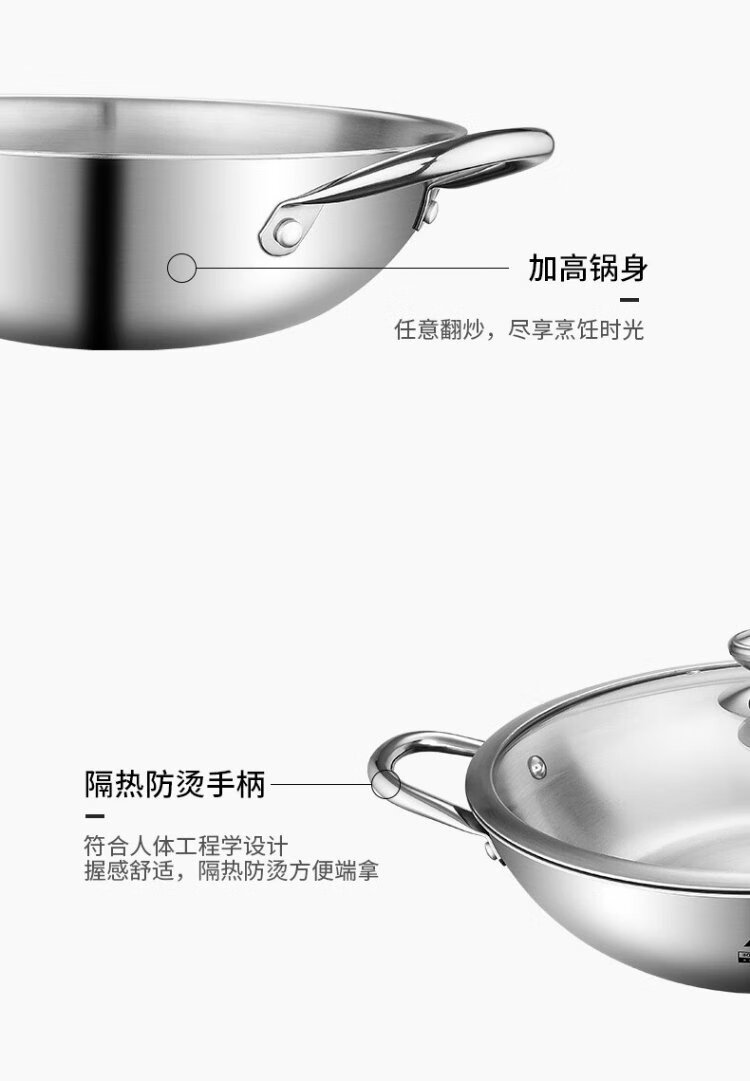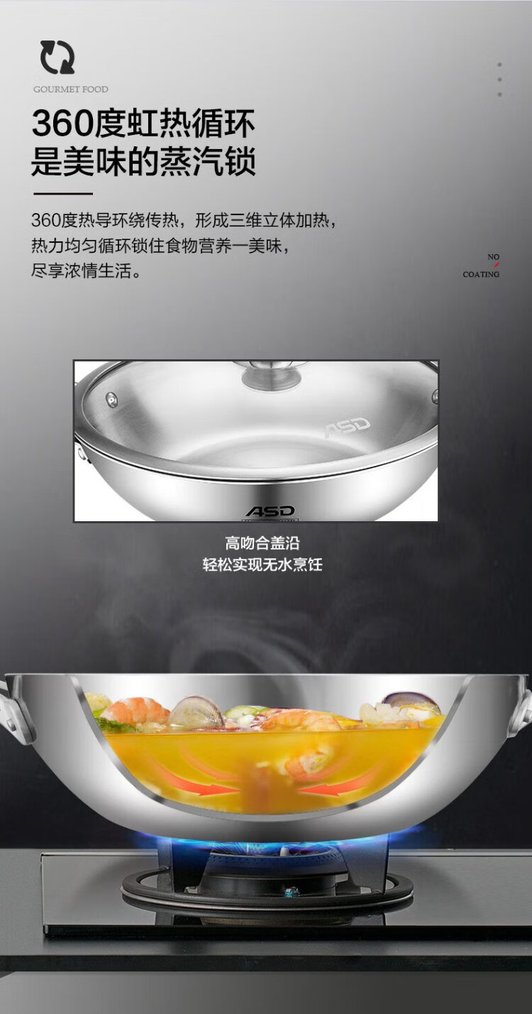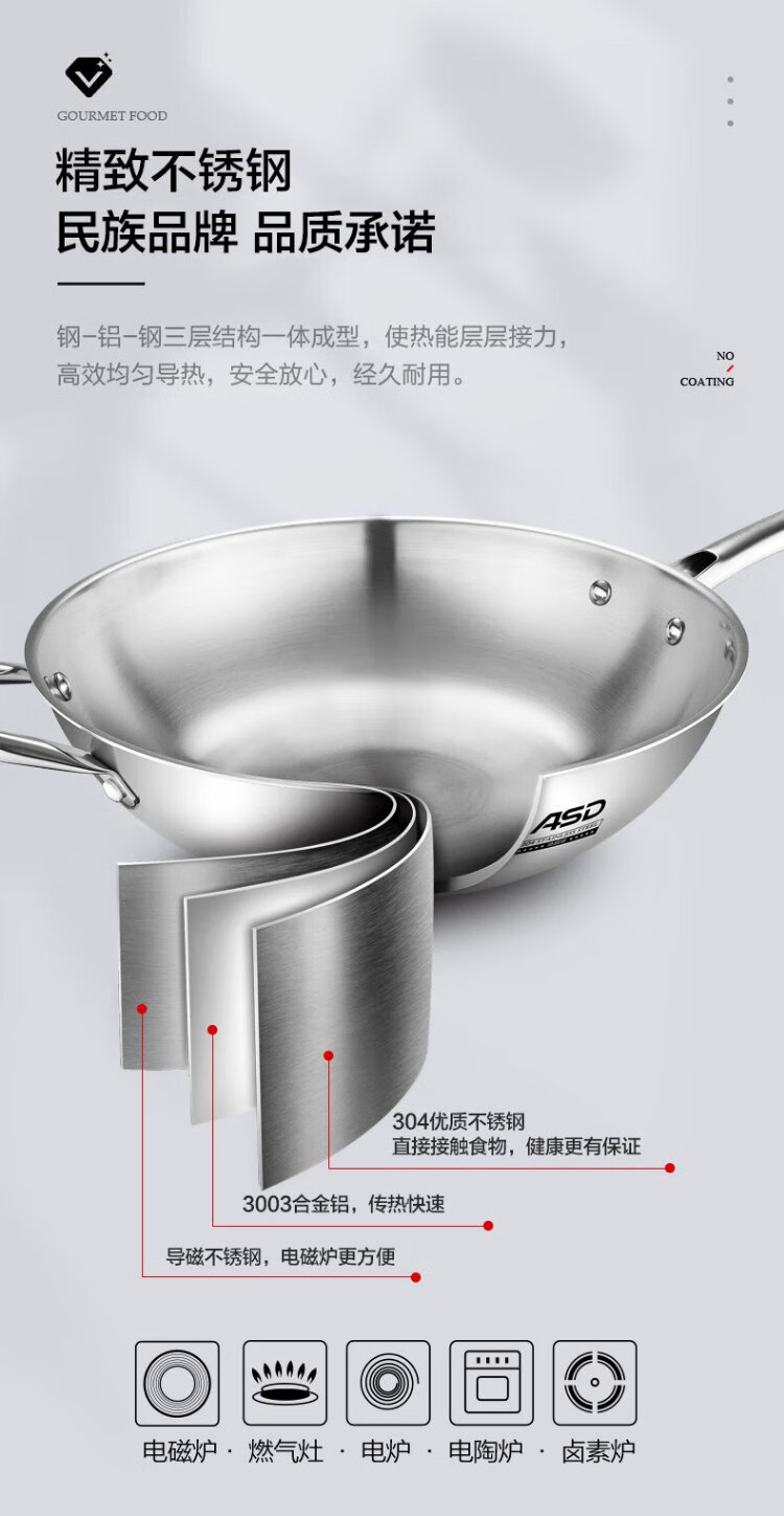 ASD wok 304 stainless steel uncoated household wok 32cm gas induction cooker universal TV1332