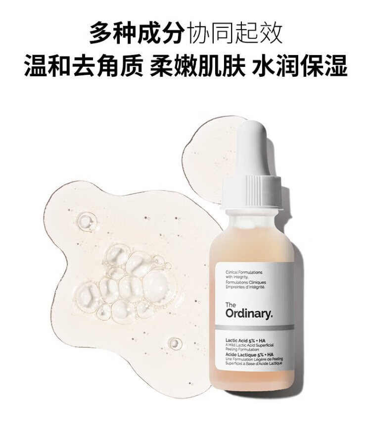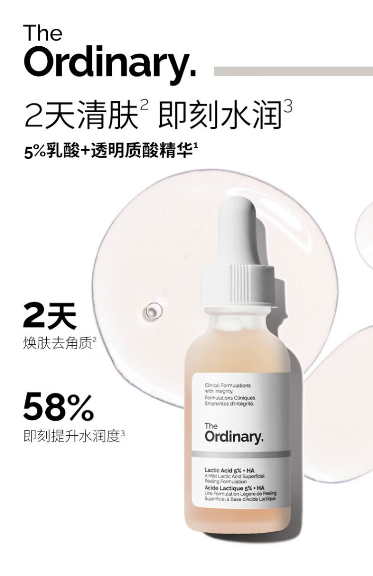 THE ORDINARY5% Lactic Acid + Hyaluronic Acid Essence 30ml Exfoliating Cleans Pores Even Skin Skin Care New Year Gift