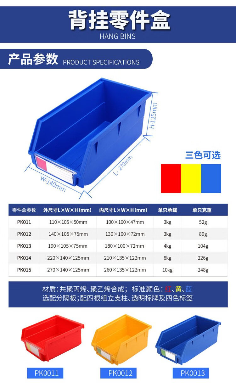 Liwang POWERKING PK014 Back-mounted parts box material box warehouse oblique shelf plastic hardware accessories tool storage box 220*140*125 customized