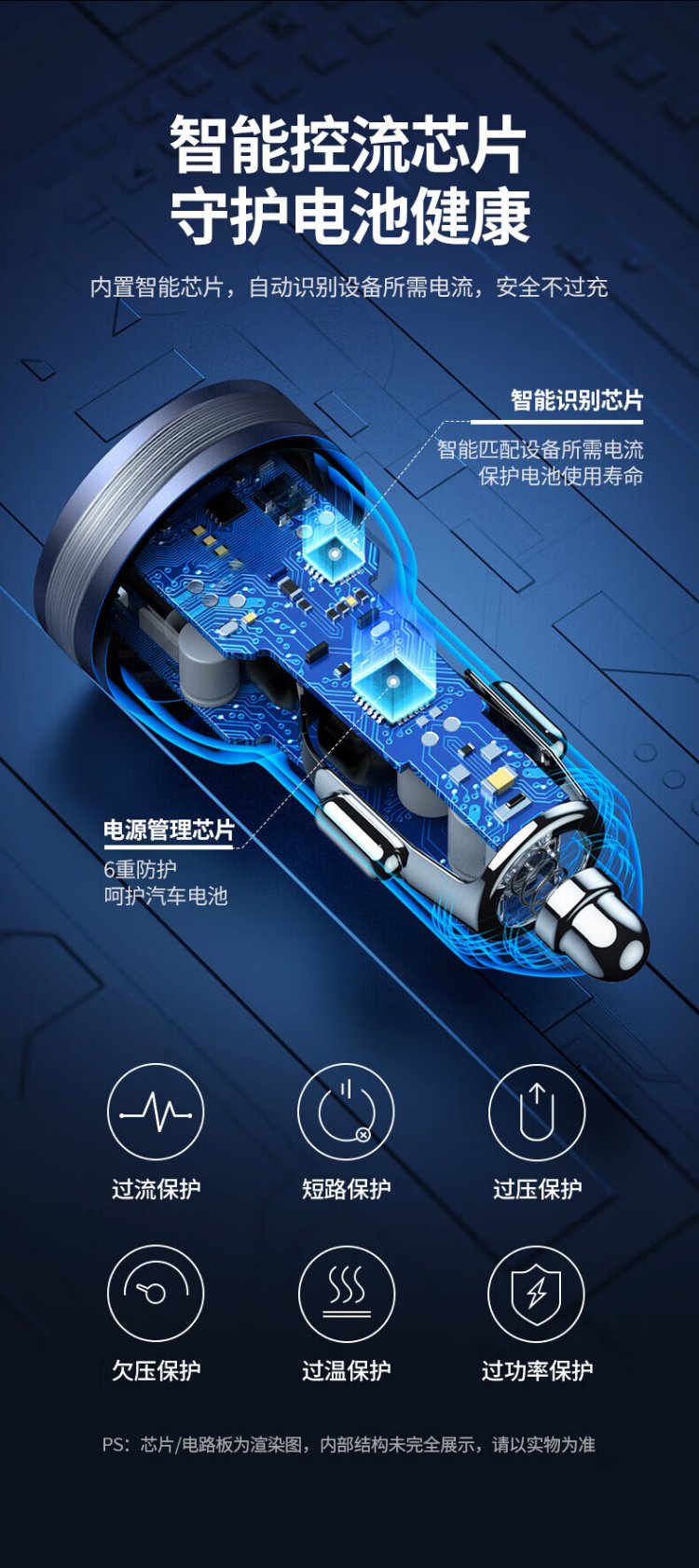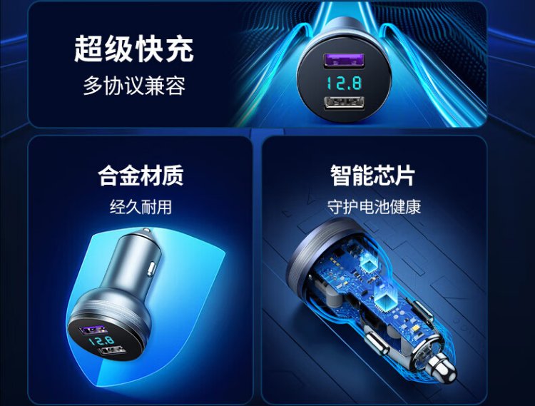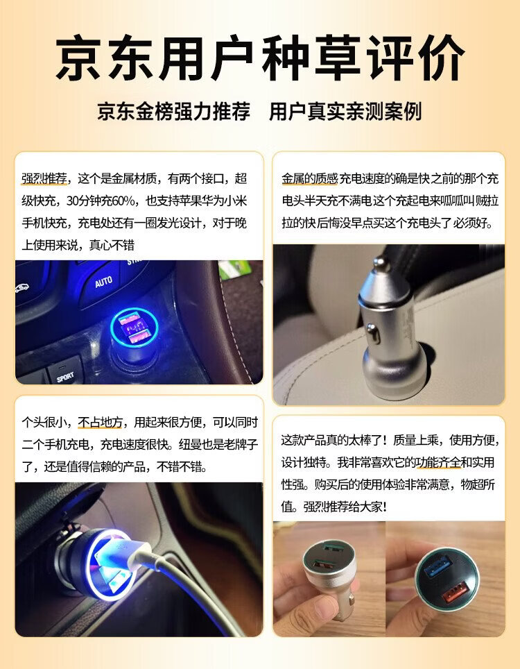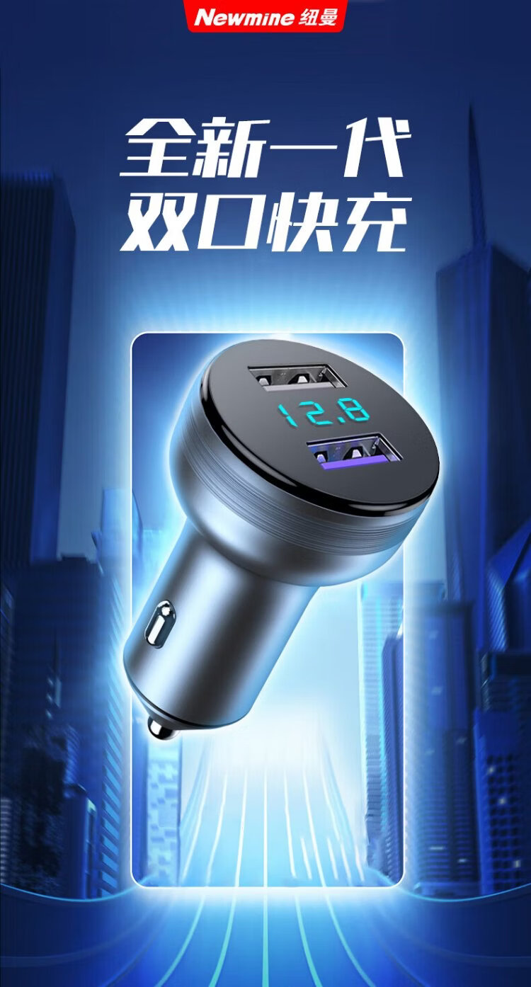 Newmine car charger cigarette lighter one to two dual USB metal car charging voltage display detection fast charge SX001-008