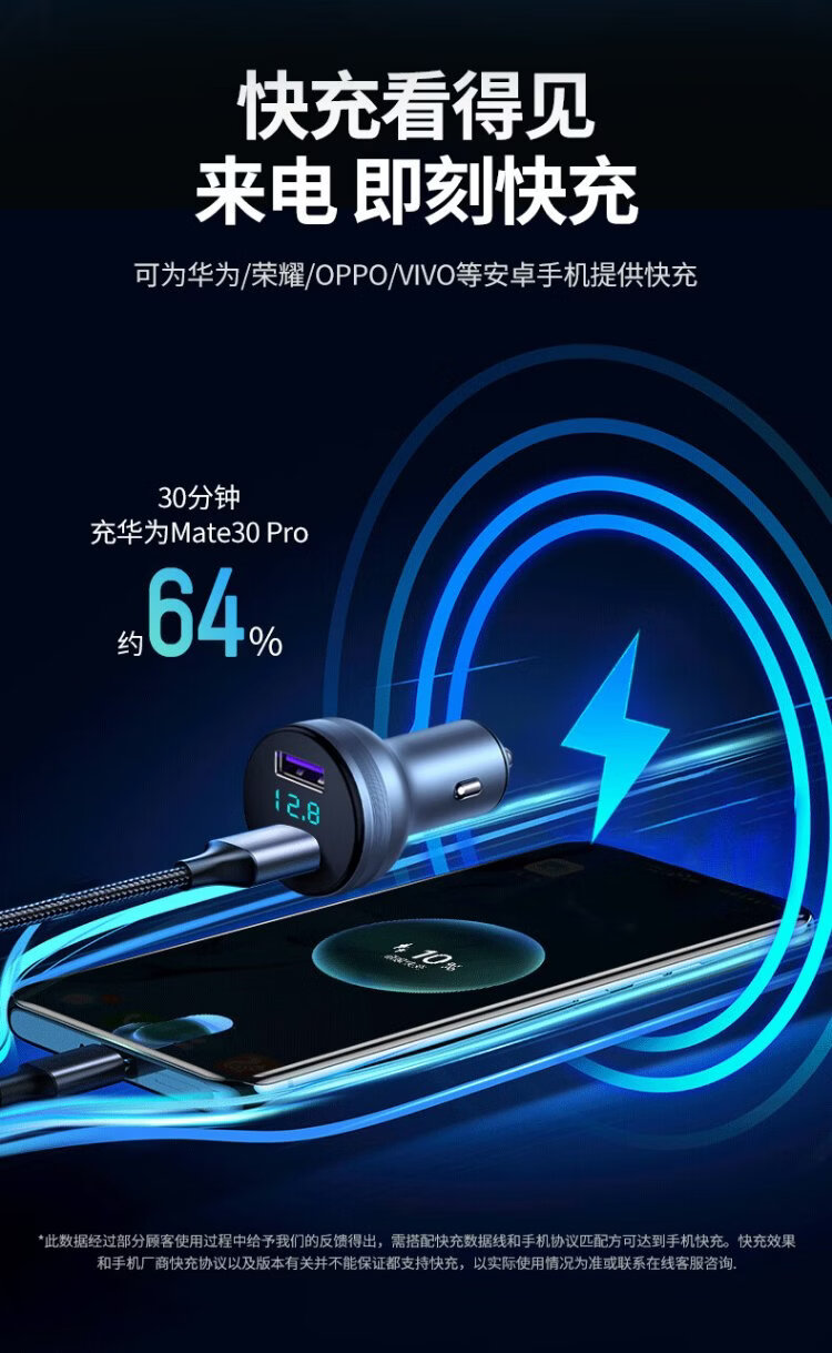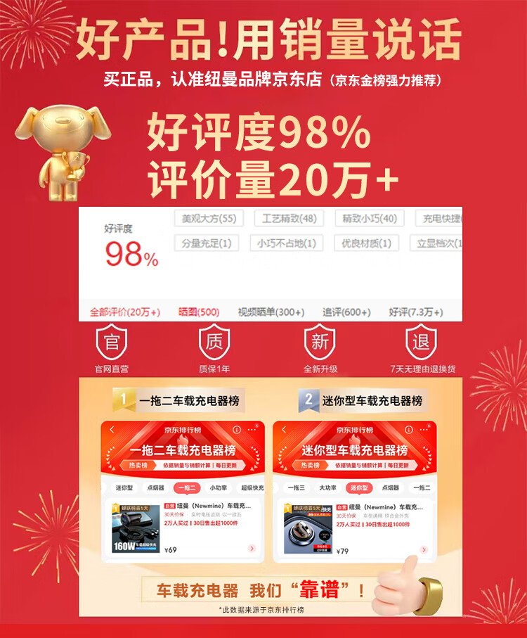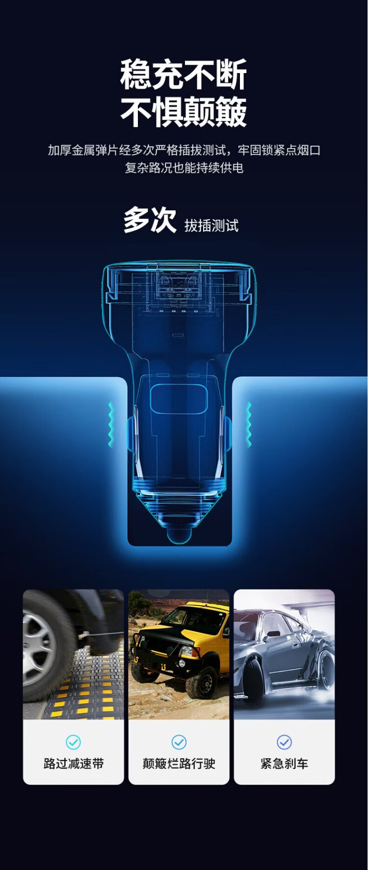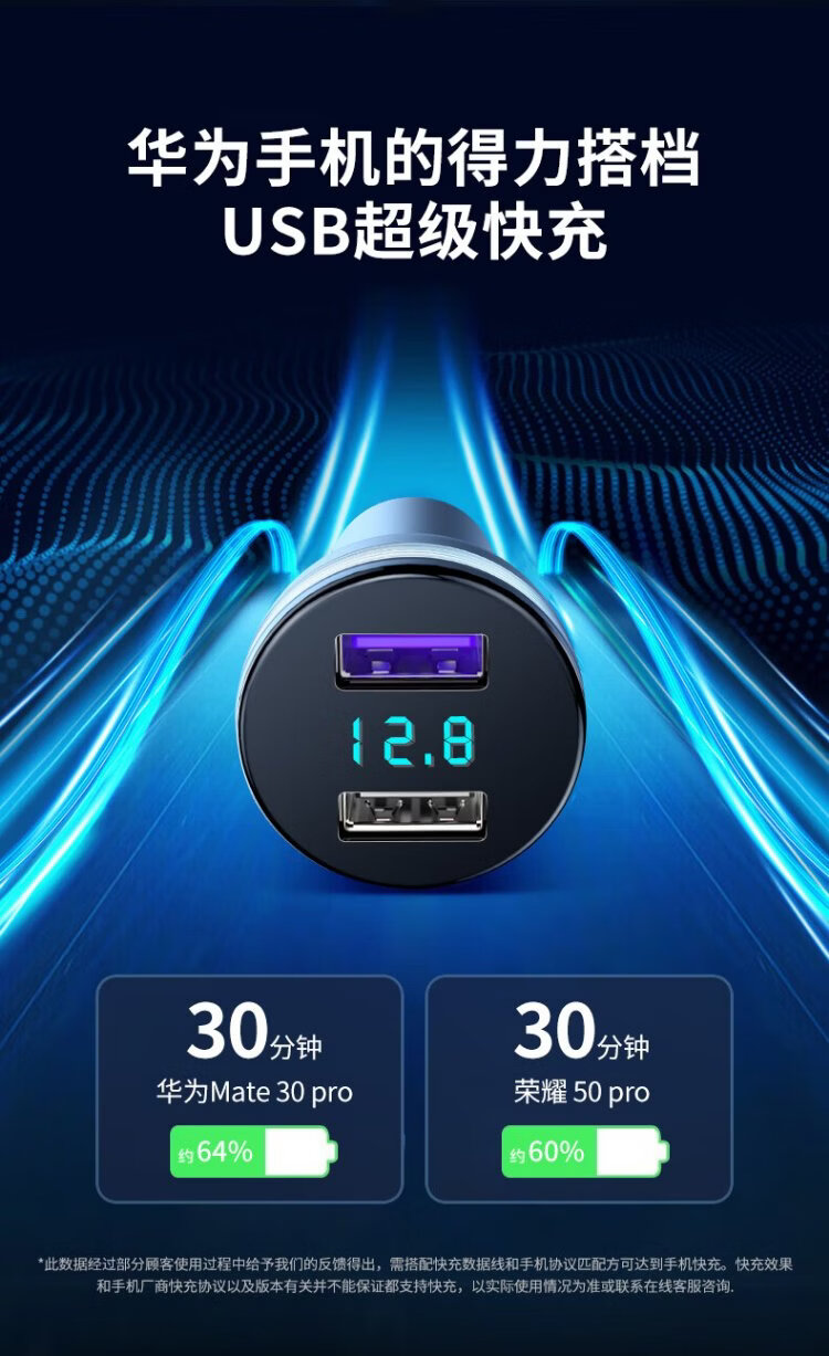 Newmine car charger cigarette lighter one to two dual USB metal car charging voltage display detection fast charge SX001-008