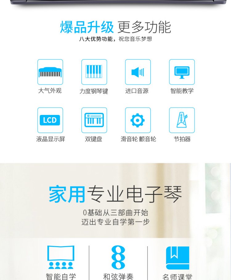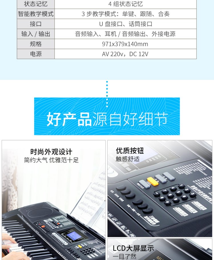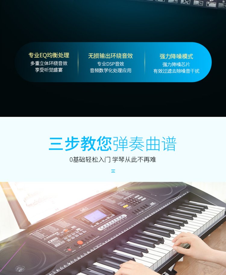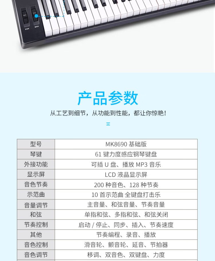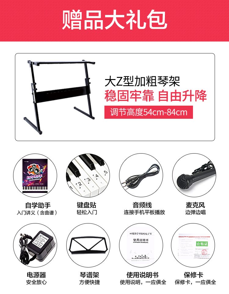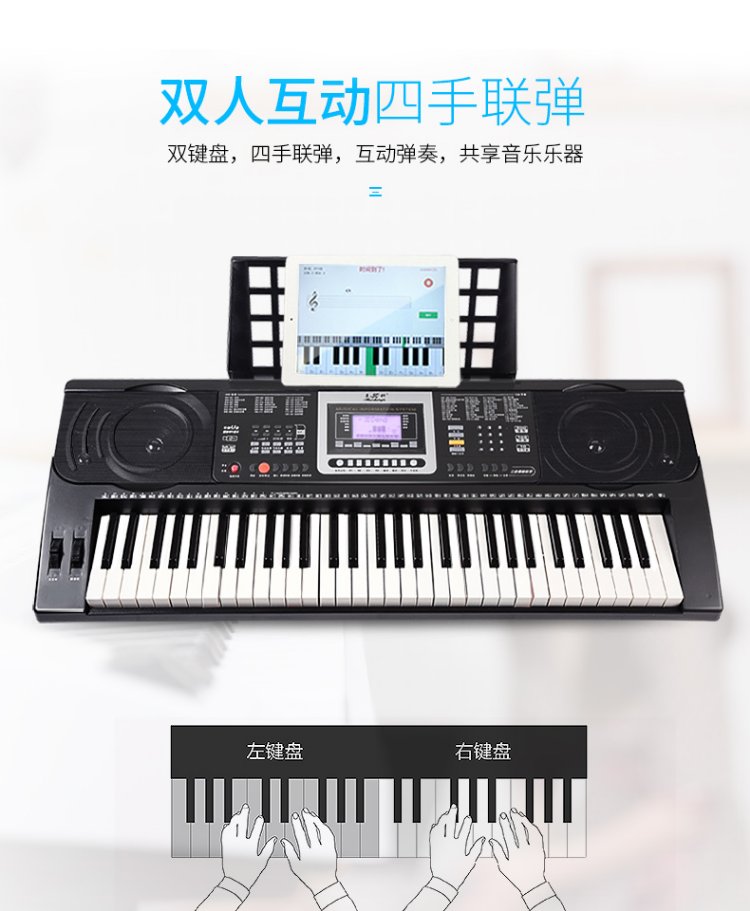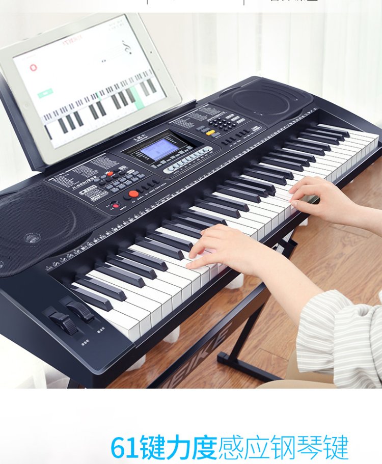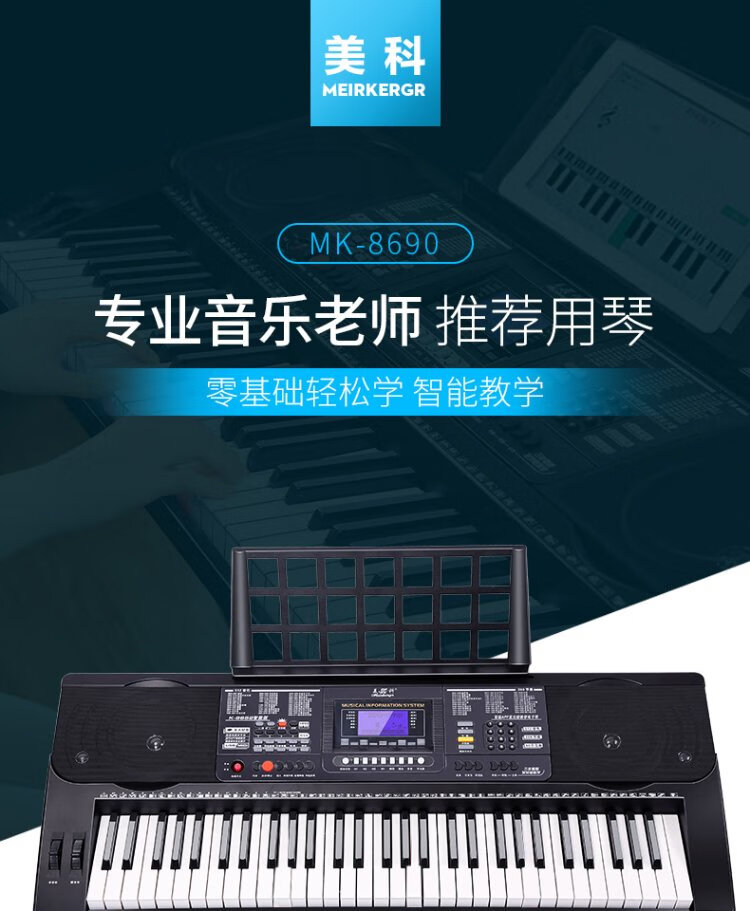 Meirkergr MK-8690 61-key velocity-sensitive piano key multi-functional beginner teaching electronic piano instrument connected to microphone headset U disk mobile phone pad with piano stand