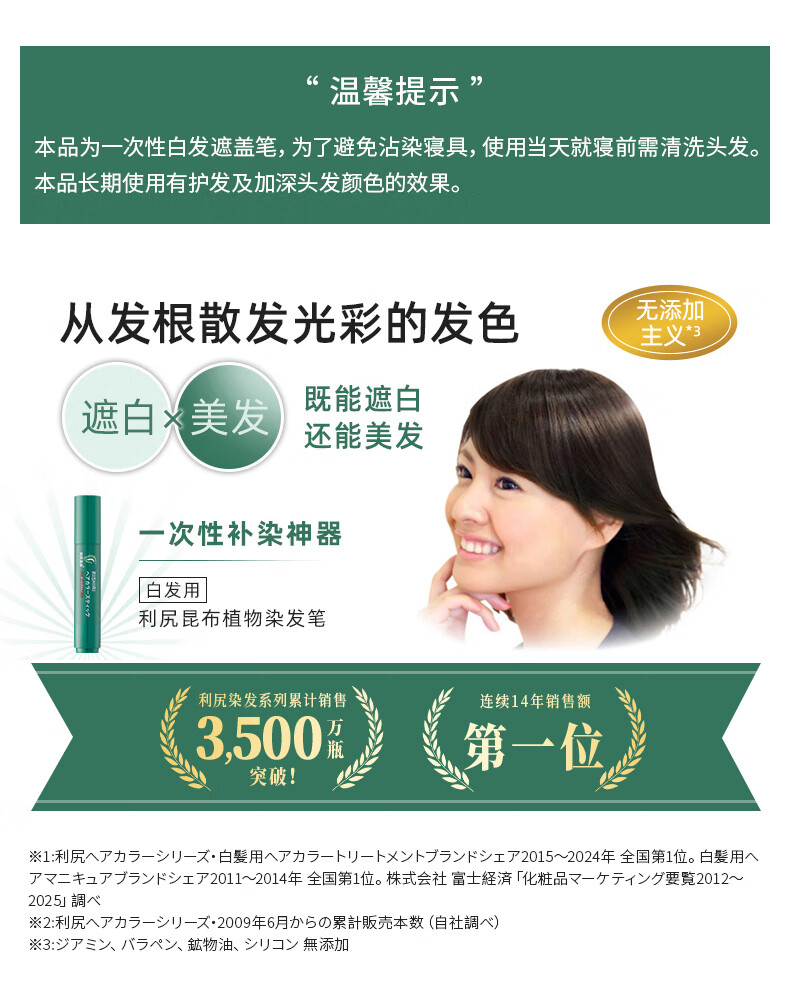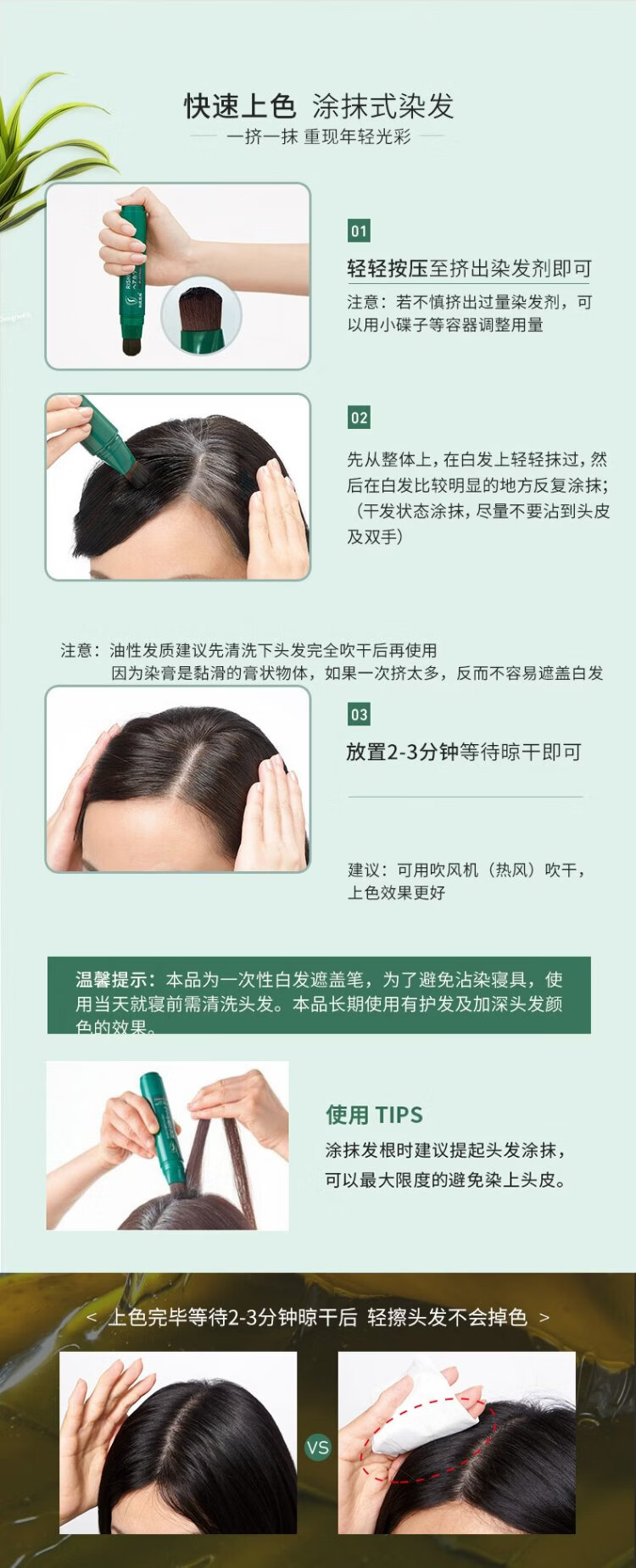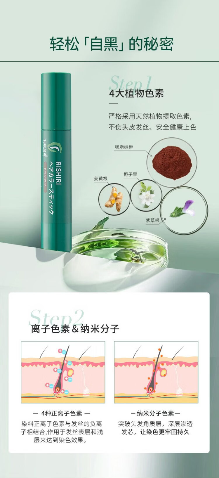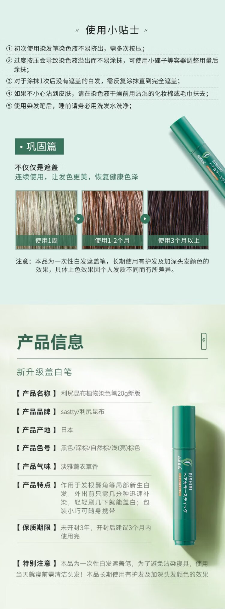 Rishiri kelp plant hair dye pen dark brown 20g quick-drying to cover white hair temporary disposable portable quick dye imported from Japan