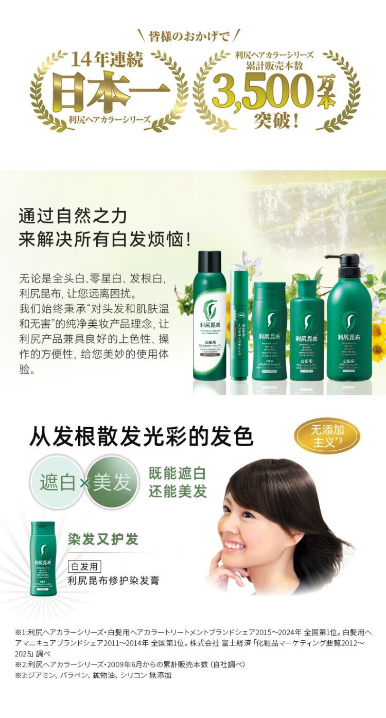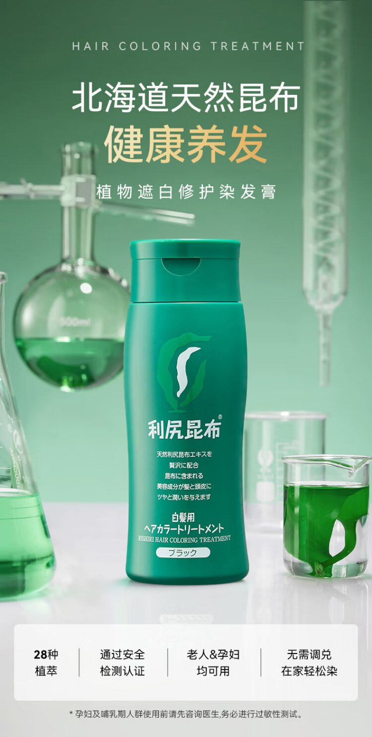 Rishiri kelp repair hair dye dark brown 200g re-dye to cover white hair plant extract hair nourishment self-dye imported from Japan