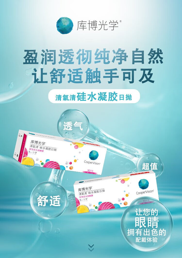 Cooper Optical Oxygen Clear Imported Transparent Contact Lenses Silicone Hydrogel Daily Disposable 30 Pieces 525 Degrees
