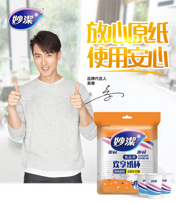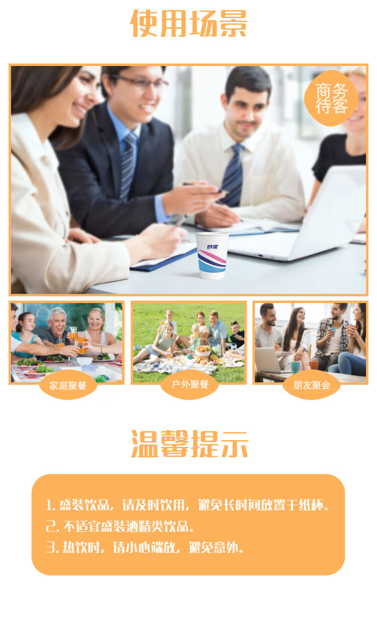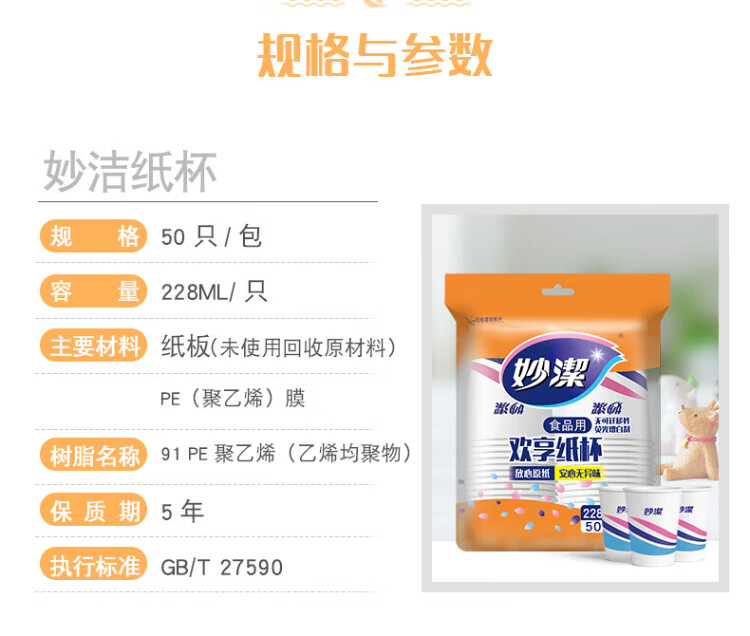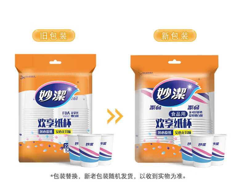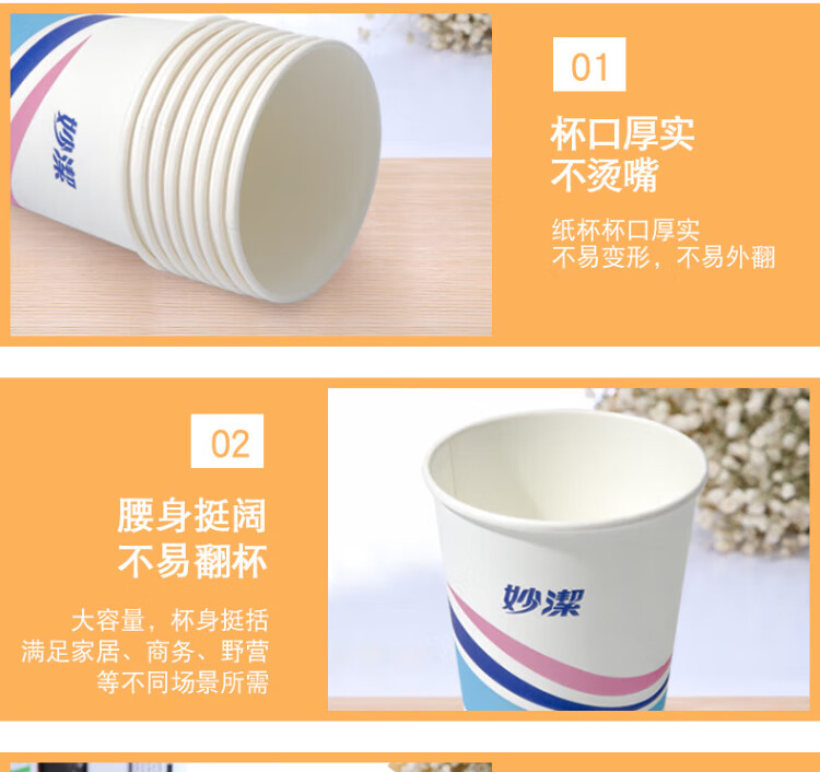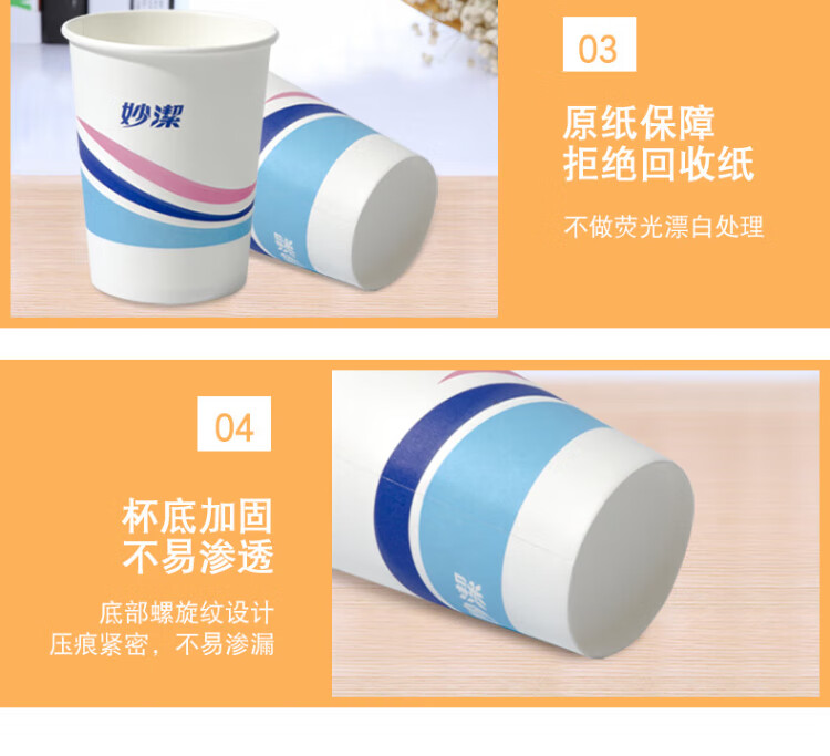 Miaojie paper cup disposable cup tea thickened food grade business cup medium size 228ML*50 pieces