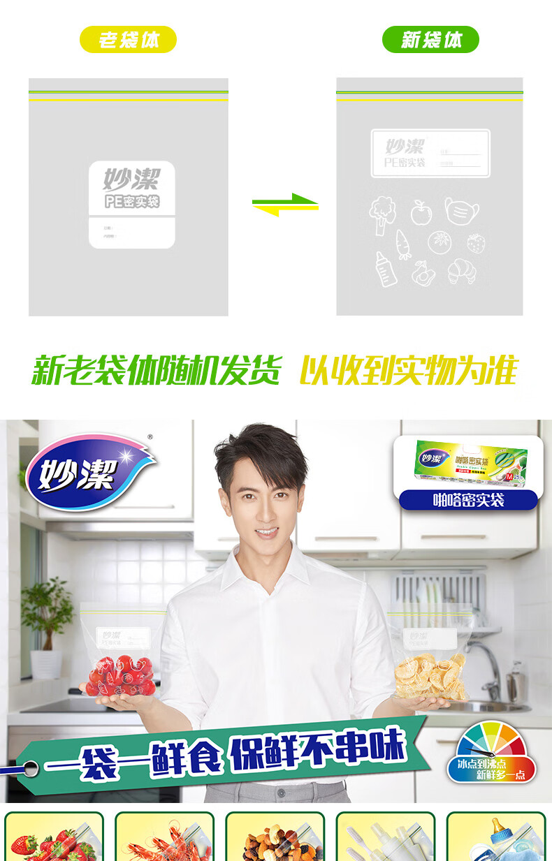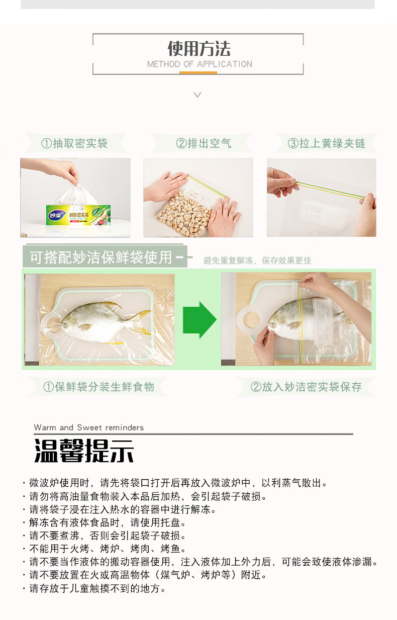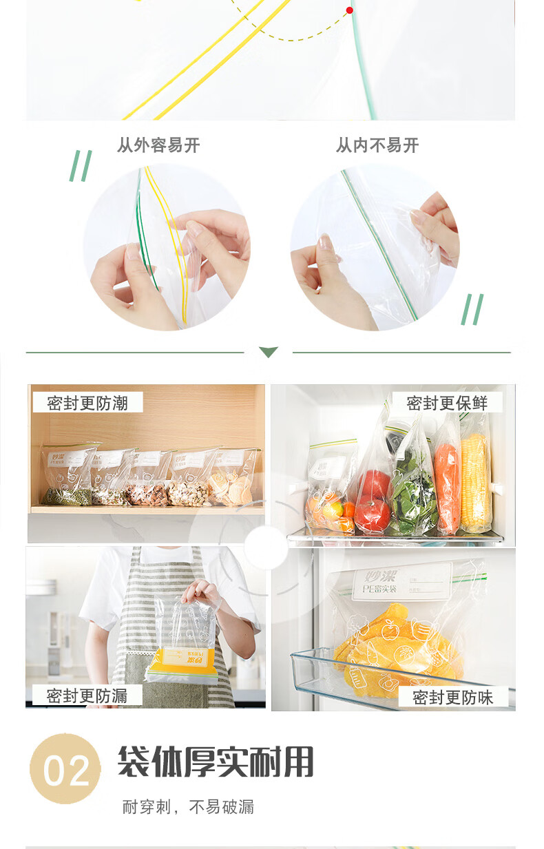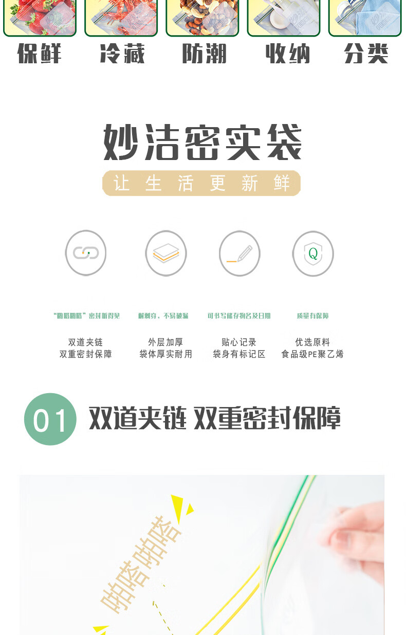 Miaojie medium-sized sealed bags 25 pieces thickened food-grade fresh-keeping ziplock bags snap dense bags refrigerator kitchen