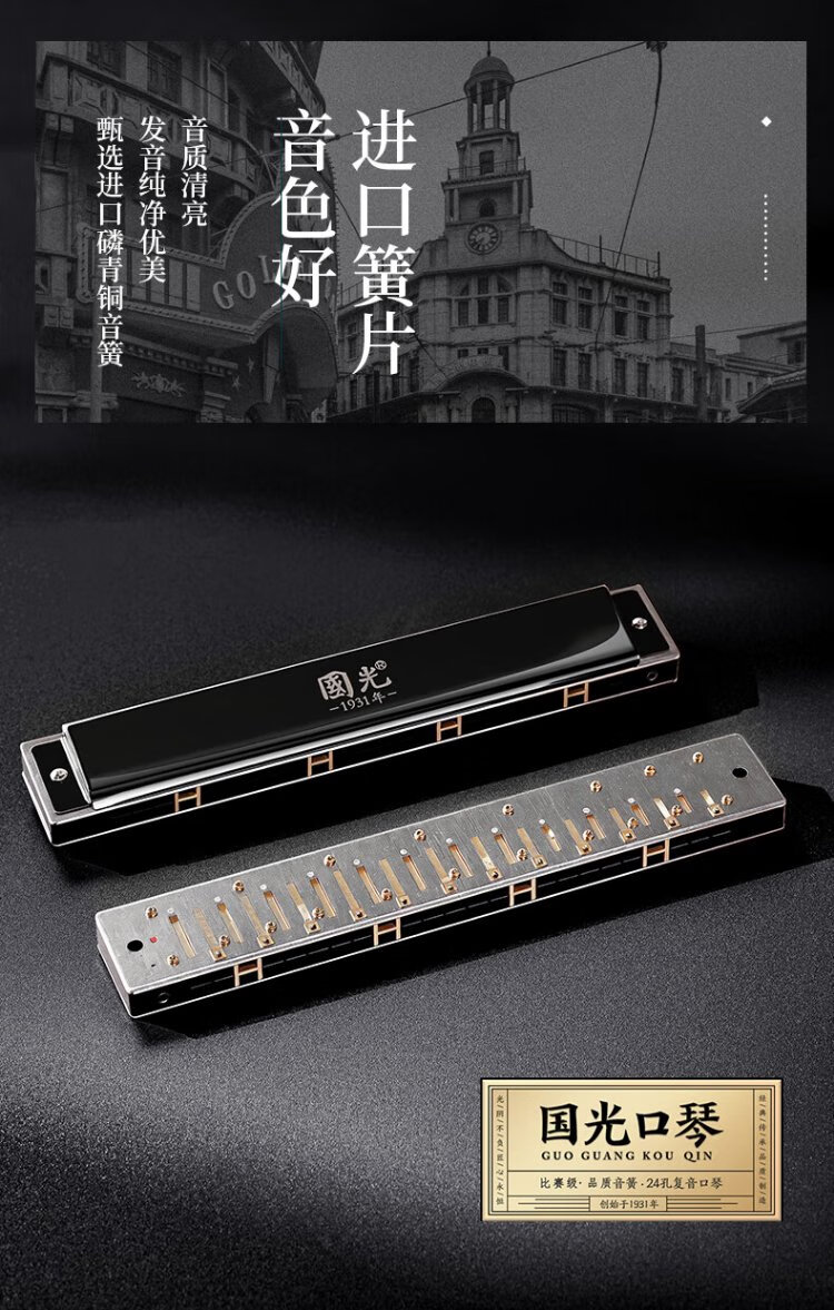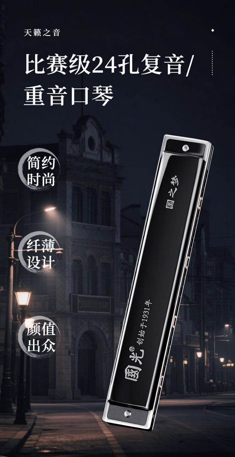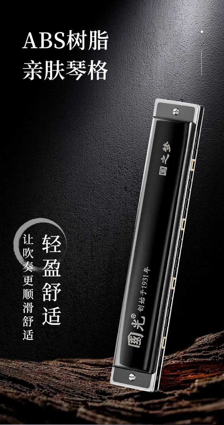 Guoguang 24-hole Guozhimeng imported gongs competition grade polyphonic C harmonica (Athens black/with teaching materials)