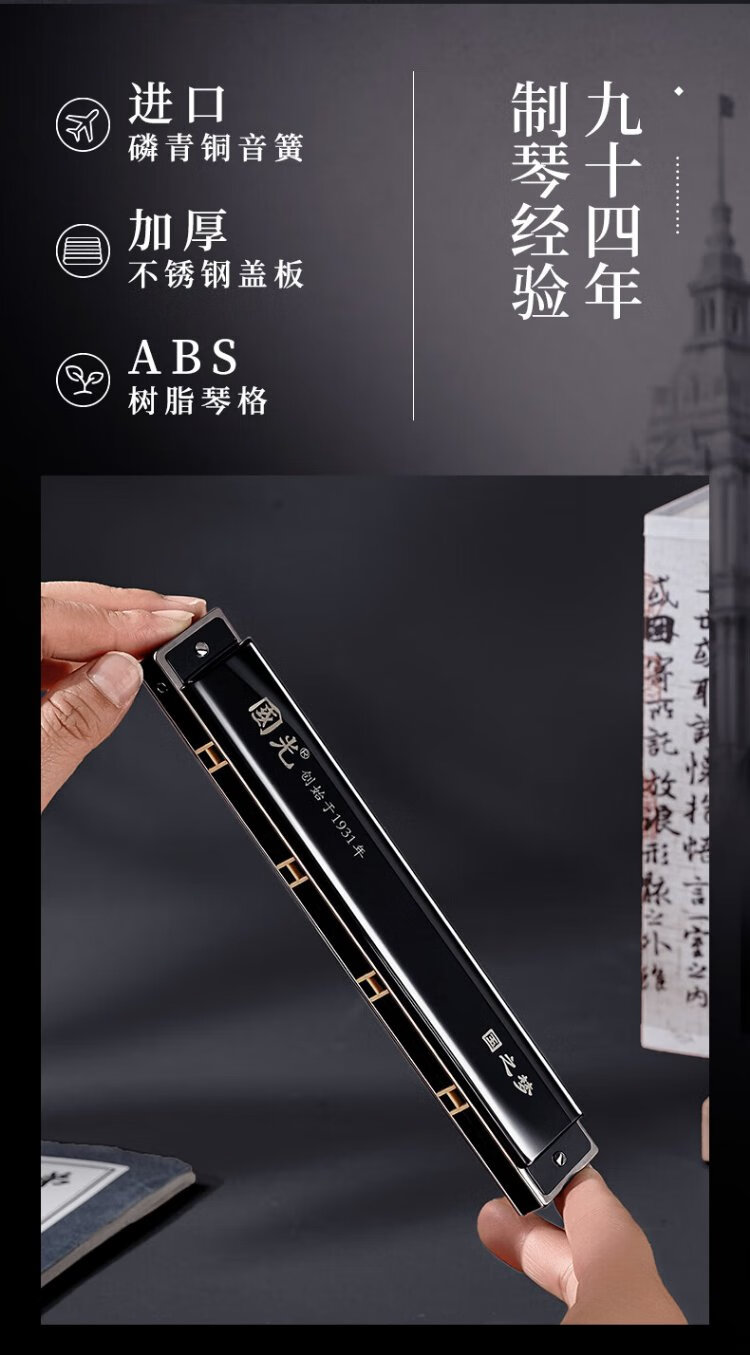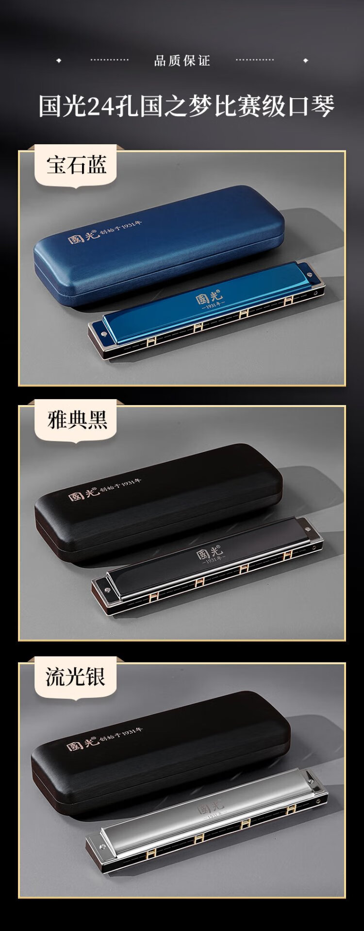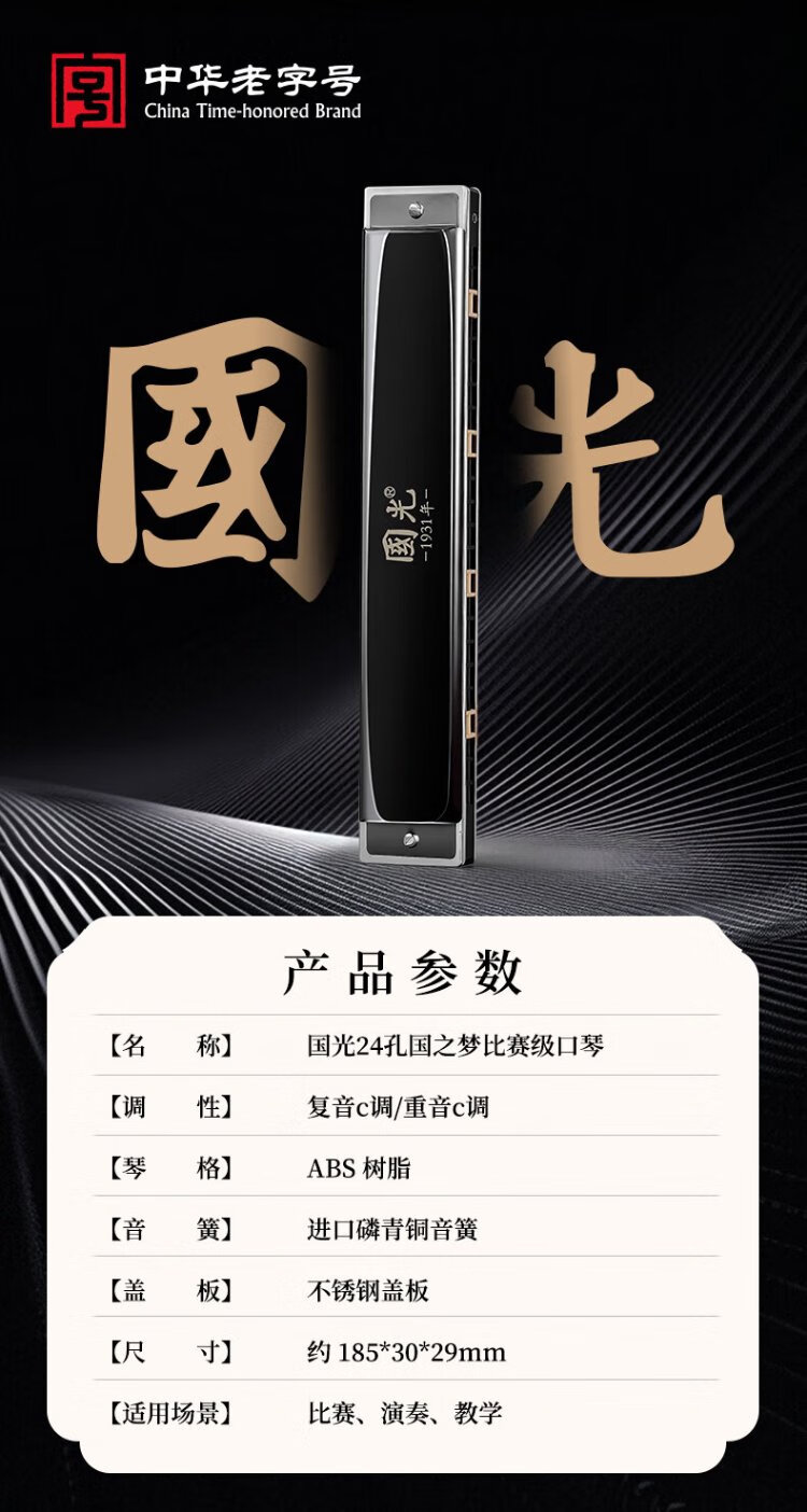 Guoguang 24-hole Guozhimeng imported gongs competition grade polyphonic C harmonica (Athens black/with teaching materials)