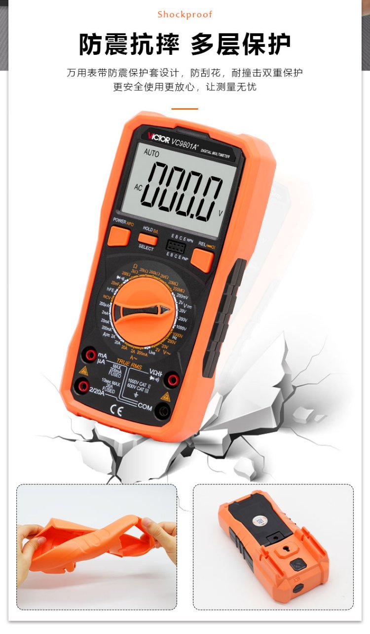Victory Instrument (VICTOR) high-precision digital multimeter household multi-function electrician special large capacitor VC9801A+