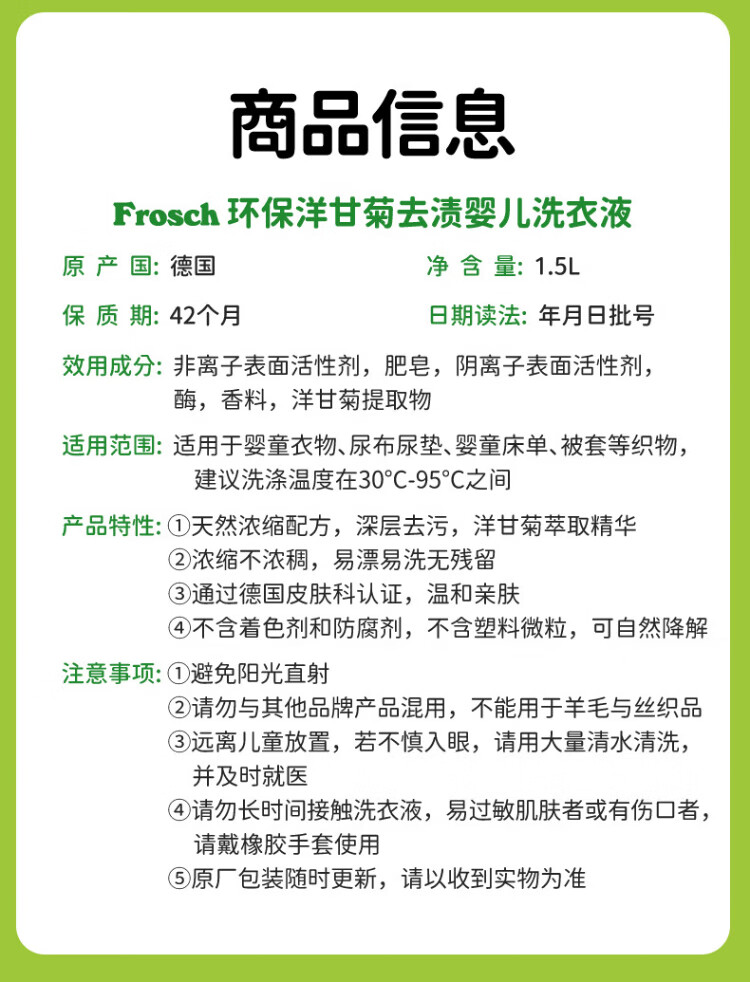 Frosch baby chamomile laundry detergent 1.5L imported