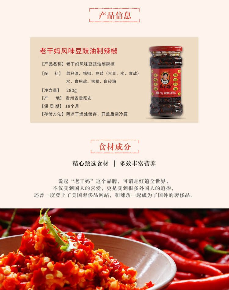 Tao Huabi Laoganma Chili Sauce Flavored Soybean Oil Chili 280g Guizhou Specialty