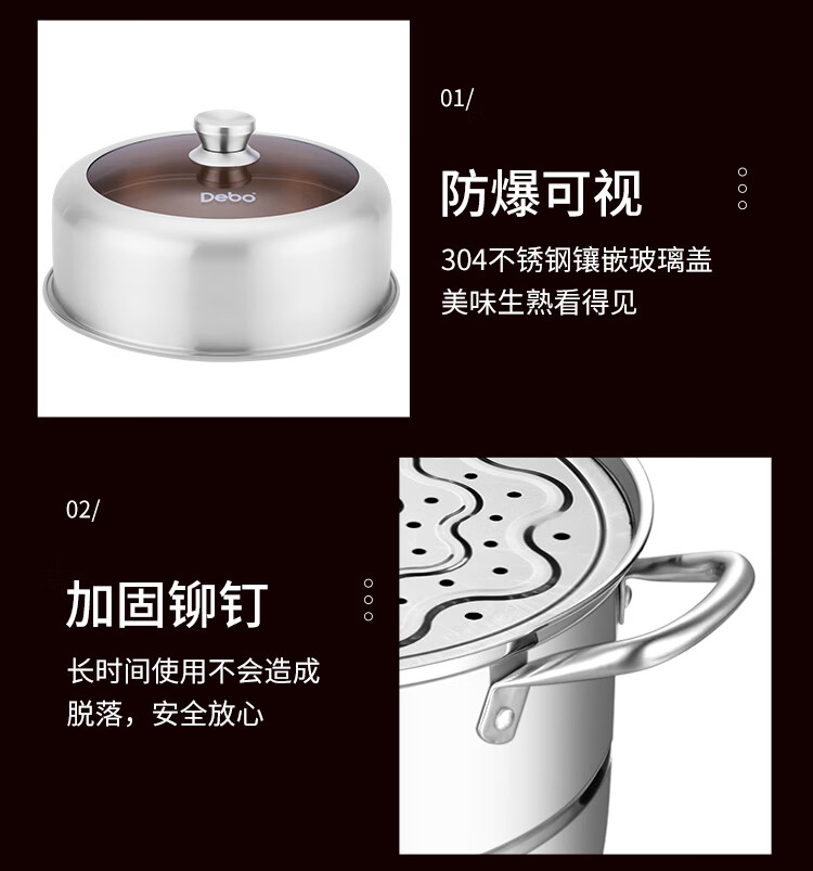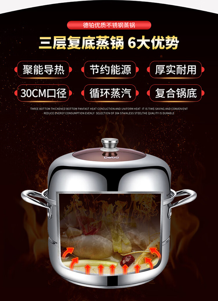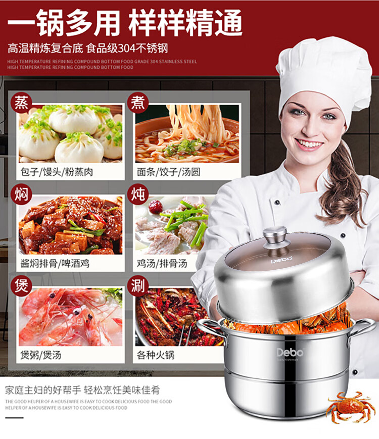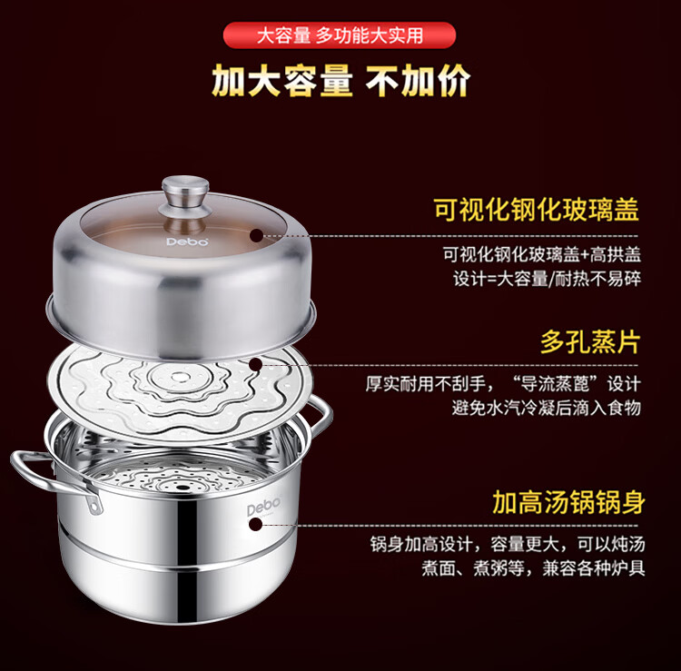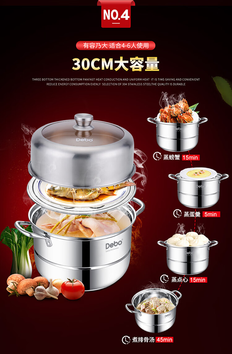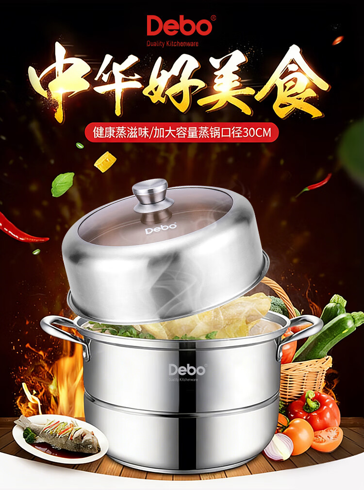 Debo Debo soup steamer 304 stainless steel pot two-layer steamer induction cooker universal Warwick 30cm