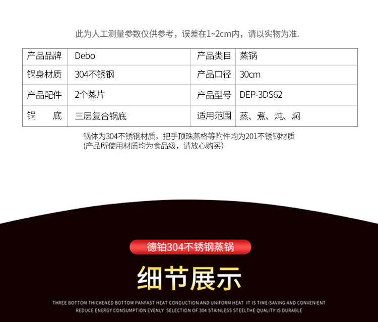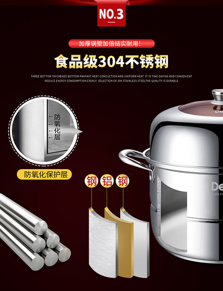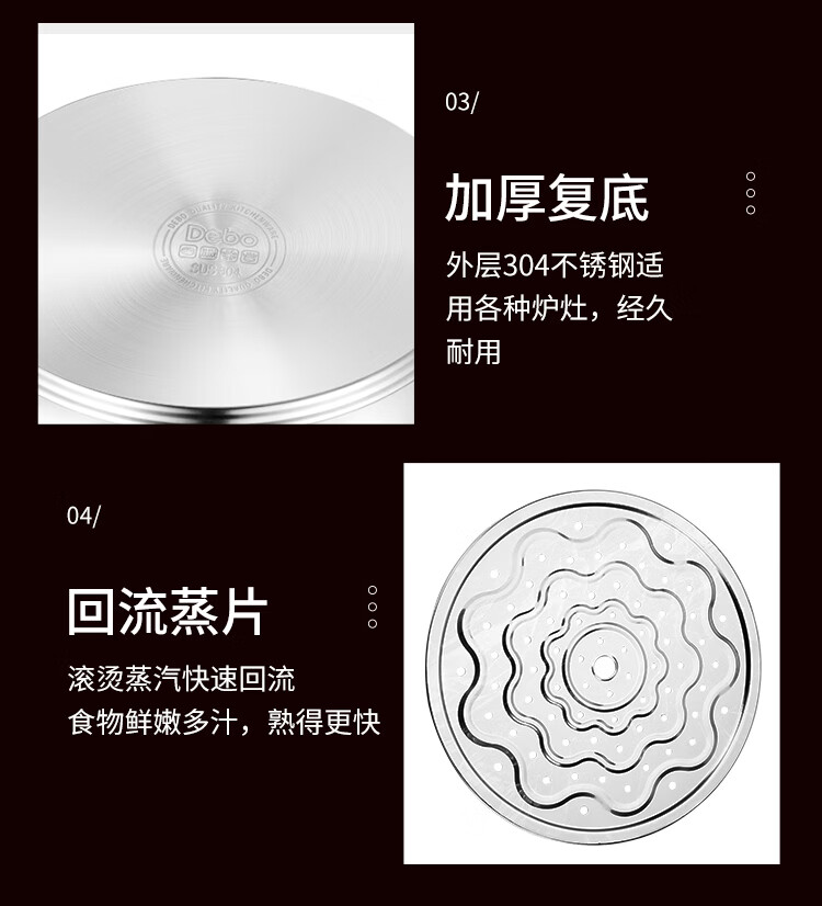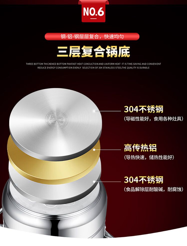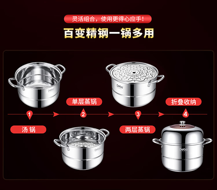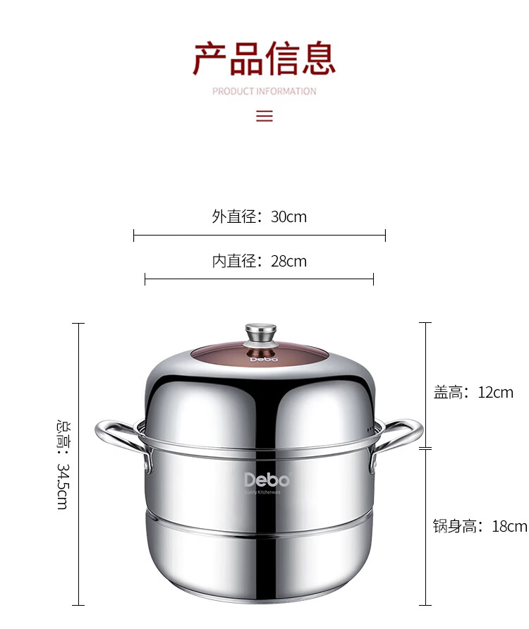 Debo Debo soup steamer 304 stainless steel pot two-layer steamer induction cooker universal Warwick 30cm