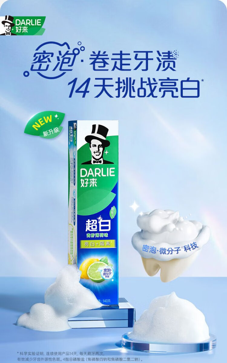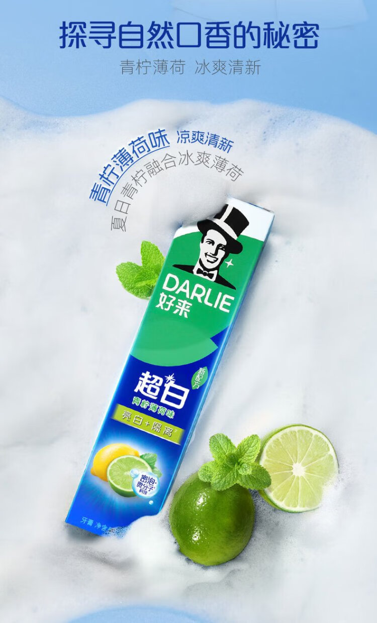 DARLIE White Deer Recommends Super White Lime Mint Toothpaste, Whitening, Yellowing and Removing Tooth Stains 140g New and Old Shipped Randomly