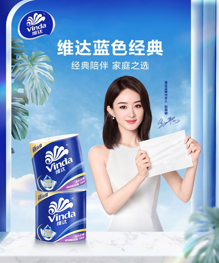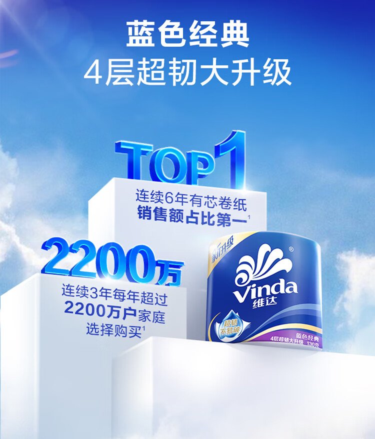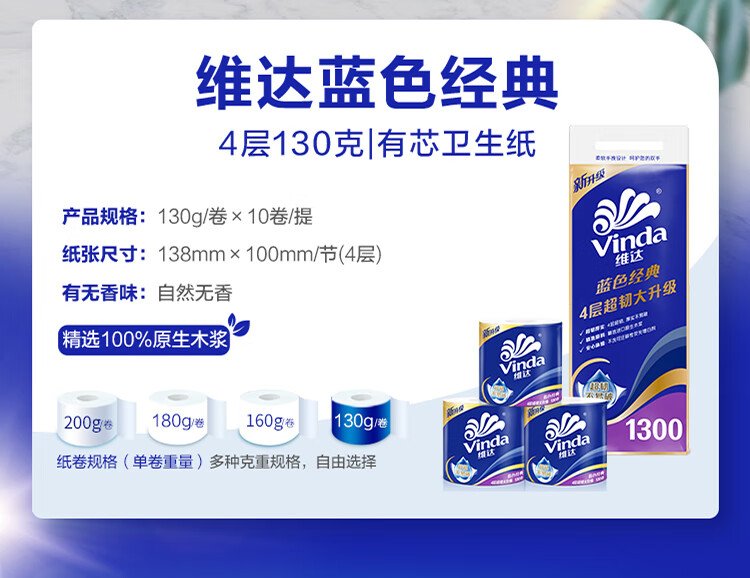 Vinda cored roll paper blue classic 4 layers 130g*10 rolls thick and tough toilet paper toilet paper roll paper towels